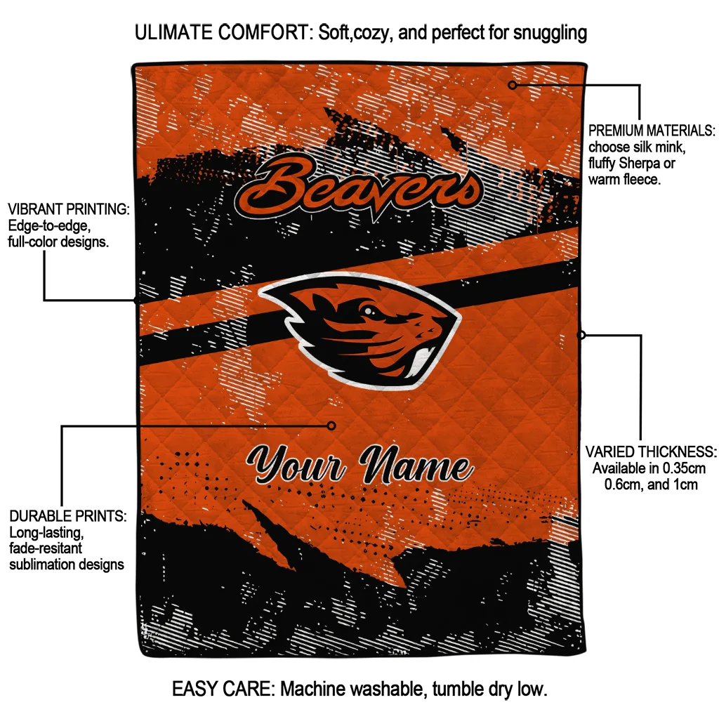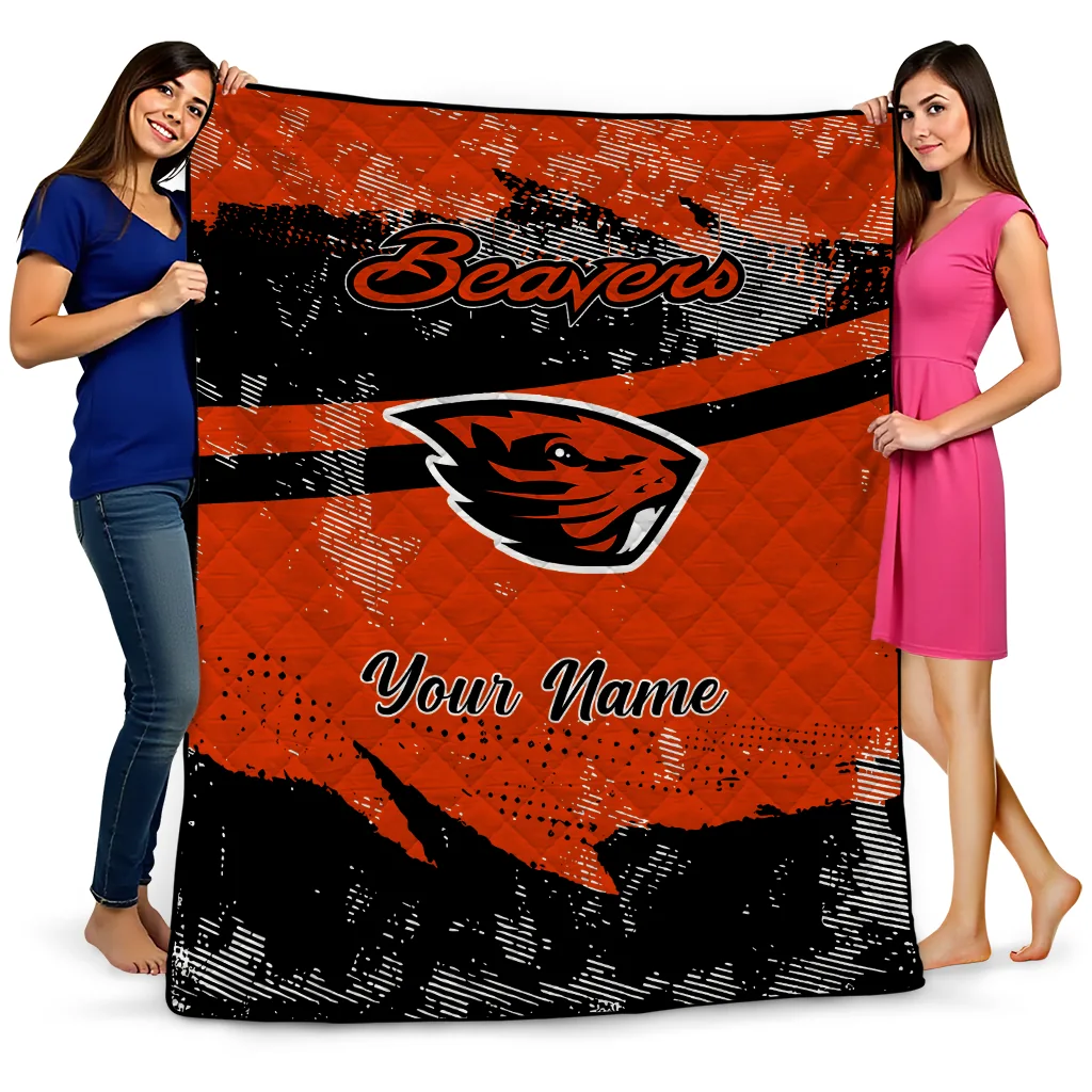 Custom Oregon State Beavers Brushstroke Layers Orange Quilt Blanket