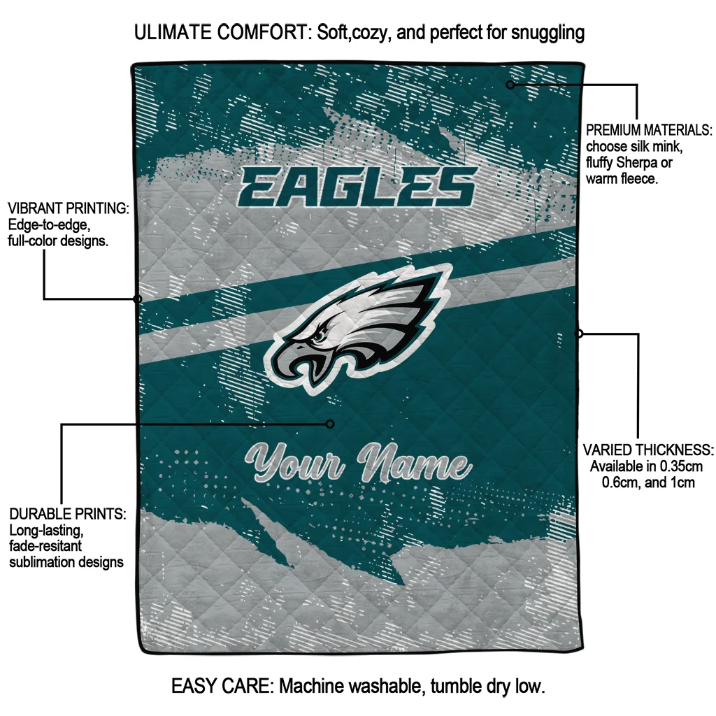 Wrap yourself in warmth and pride with the Custom Philadelphia Eagles Brushstroke Layers Green Quilt Blanket from the Philadelphia Eagles Blankets collection at Yes That Blanket. Made from 100% premium quilting-weight polyester blended with a touch of microfiber, this quilt offers a smooth, soft finish you’ll love. Choose between two quilting styles—Stipple or Diagonal—and enjoy the comfort of a cotton-filled layer inside that adds extra coziness for every season. The border is available in classic black or white, giving your design a clean, timeless edge.