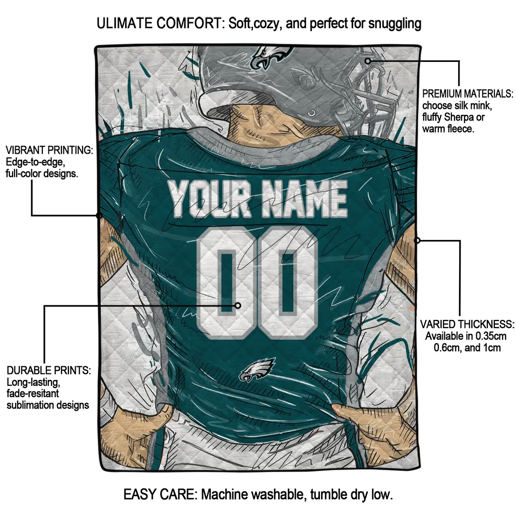 Custom Philadelphia Eagles Player Sketch Green Gray Quilt Blanket