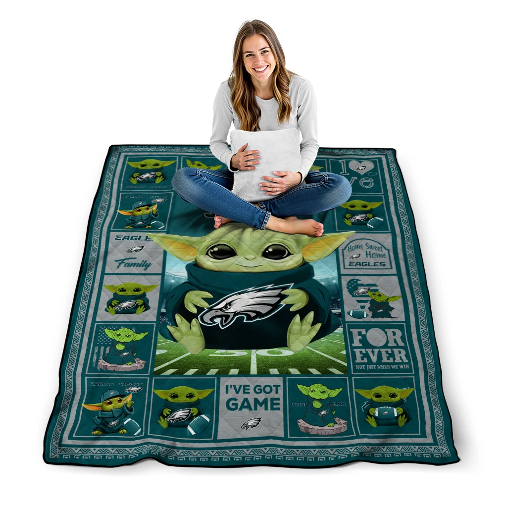 The Custom Philadelphia Eagles Yody Baby Pattern Green Quilt Blanket is more than a blanket—it’s everyday comfort, thoughtfully made. Crafted from premium quilting fabric with a soft microfiber touch, it offers a smooth hand-feel and lasting coziness. Layered quilting with a cotton-filled core provides adaptable warmth across seasons while maintaining a clean, tailored look on your bed or sofa.