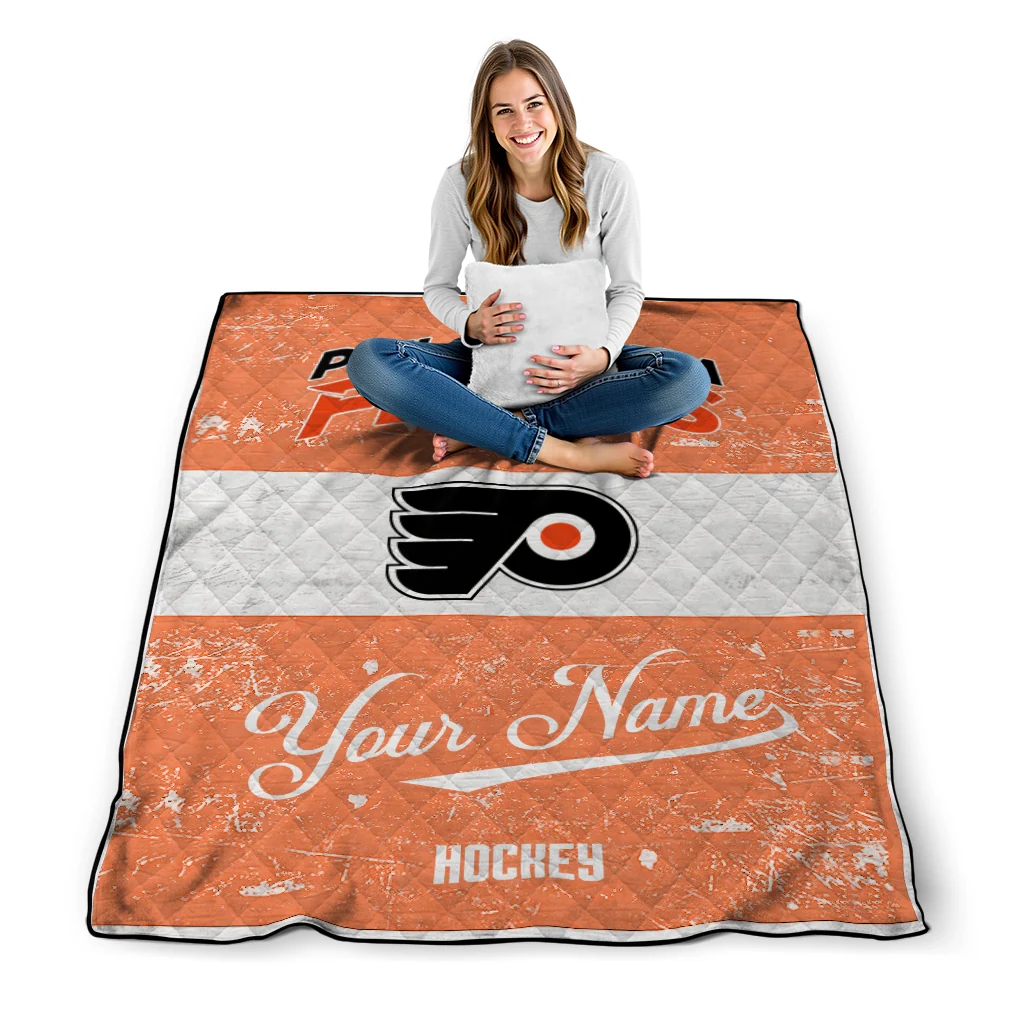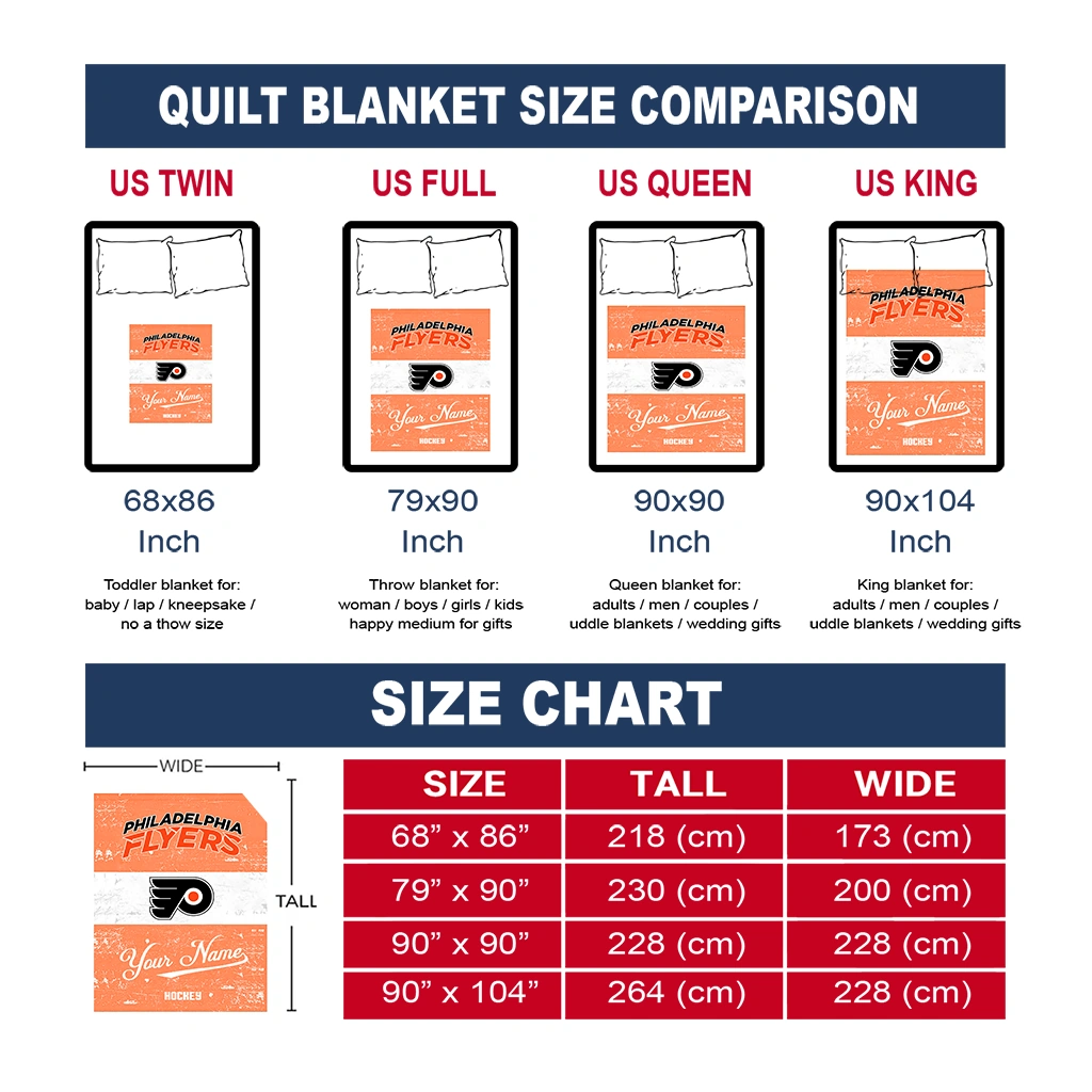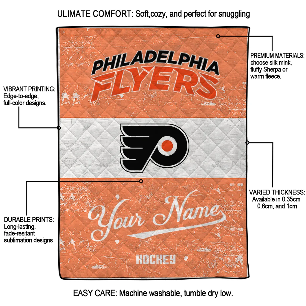 Wrap yourself in warmth and pride with the Custom Philadelphia Flyers Pinstripe Lines Orange White Quilt Blanket from the Philadelphia Flyers Blankets collection at Yes That Blanket. Made from 100% premium quilting-weight polyester blended with a touch of microfiber, this quilt offers a smooth, soft finish you’ll love. Choose between two quilting styles—Stipple or Diagonal—and enjoy the comfort of a cotton-filled layer inside that adds extra coziness for every season. The border is available in classic black or white, giving your design a clean, timeless edge.