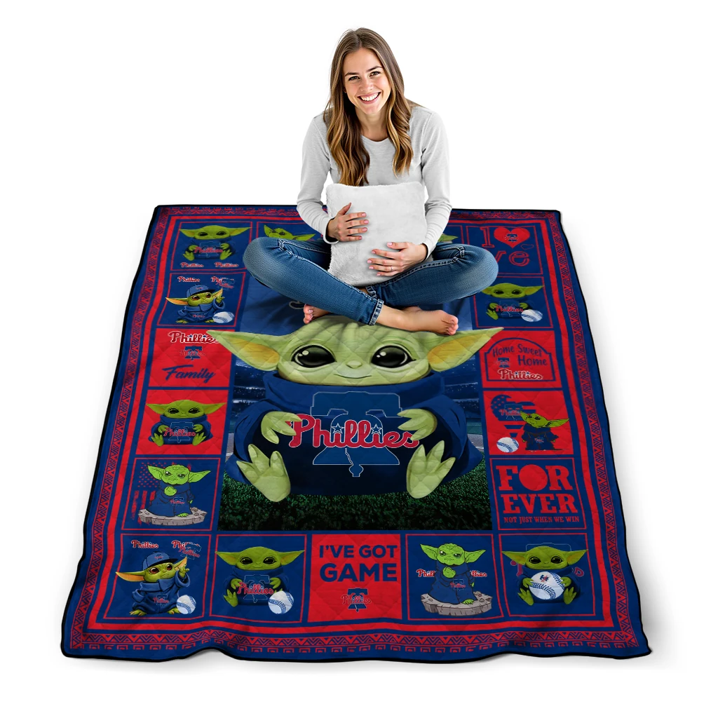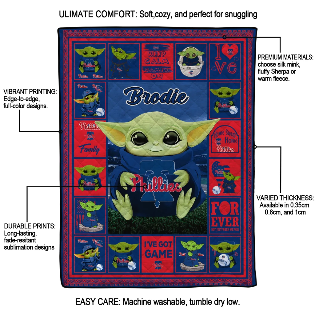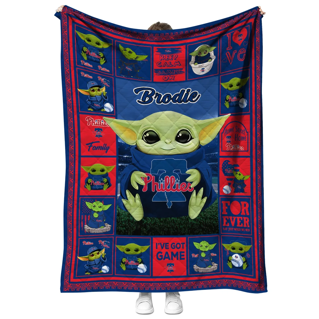 Custom Philadelphia Phillies Yody Baby Motif Blue Quilt Blanket