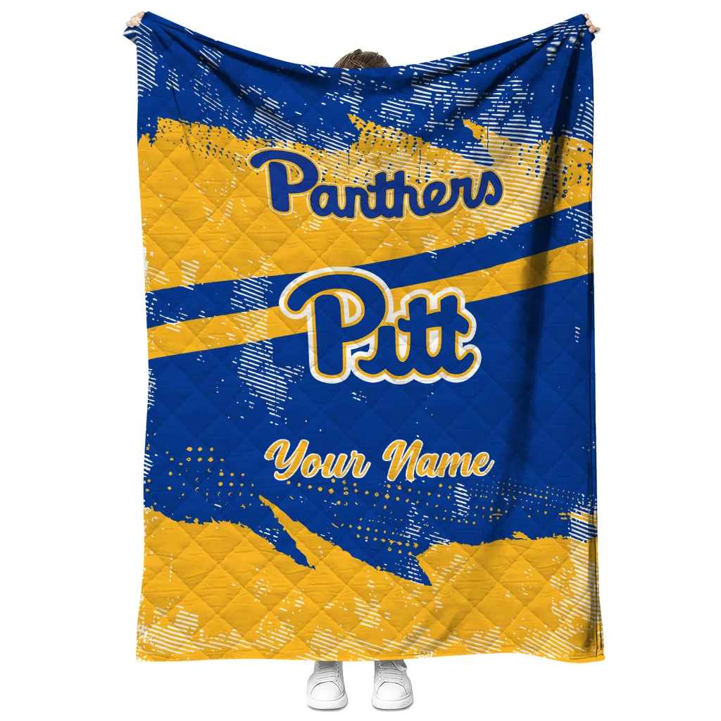 Custom Pittsburgh Panthers Brushstroke Layers Royal Blue Quilt Blanket
