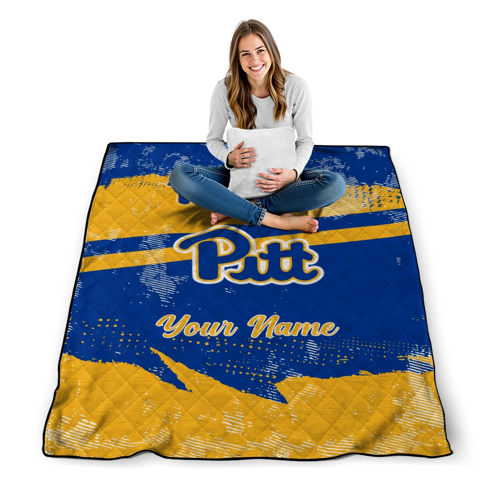 Wrap yourself in warmth and pride with the Custom Pittsburgh Panthers Brushstroke Layers Royal Blue Quilt Blanket from the Pittsburgh Panthers Blankets collection at Yes That Blanket. Made from 100% premium quilting-weight polyester blended with a touch of microfiber, this quilt offers a smooth, soft finish you’ll love. Choose between two quilting styles—Stipple or Diagonal—and enjoy the comfort of a cotton-filled layer inside that adds extra coziness for every season. The border is available in classic black or white, giving your design a clean, timeless edge.