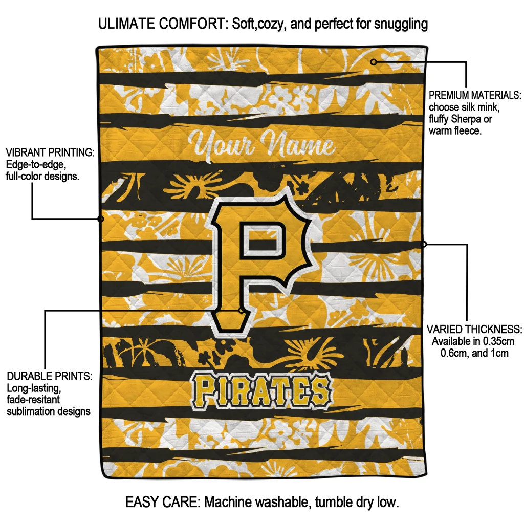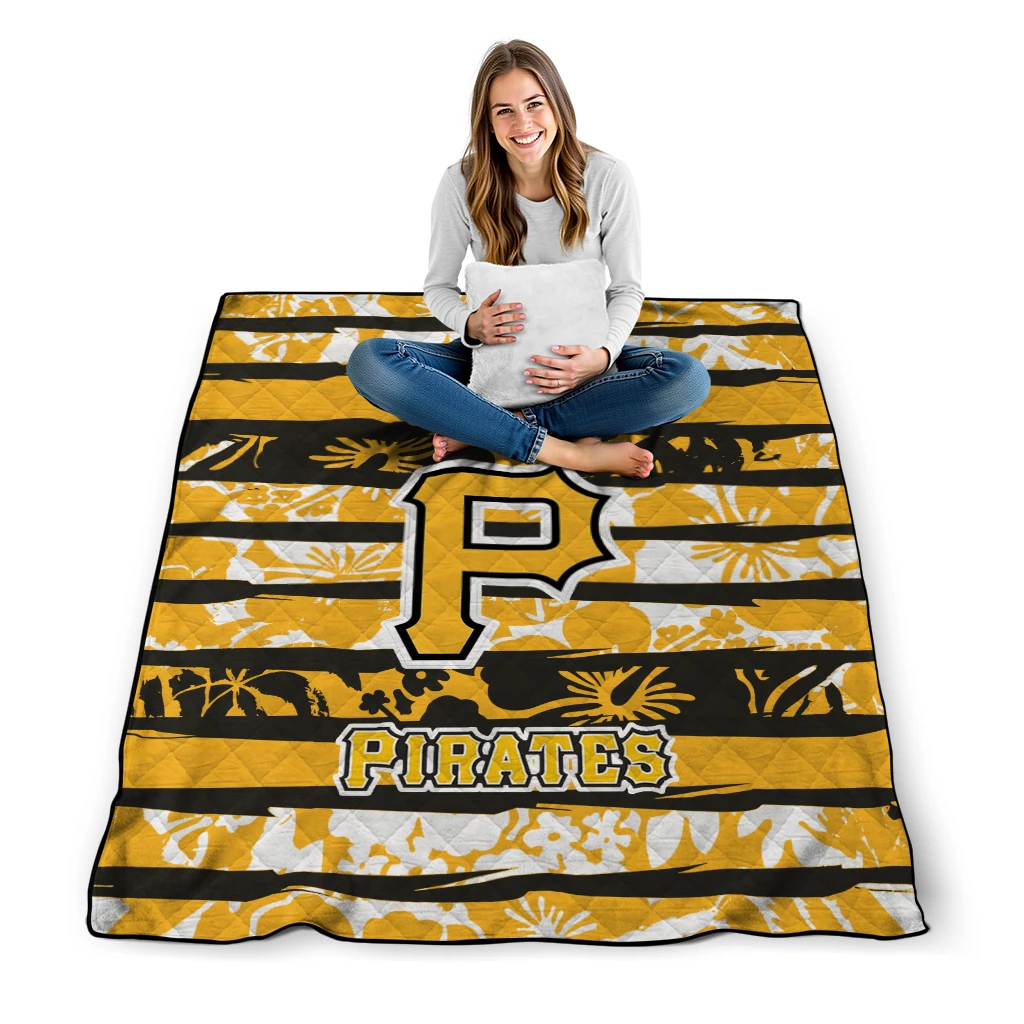 Wrap yourself in warmth and pride with the Custom Pittsburgh Pirates Layered Florals Black White Quilt Blanket from the Pittsburgh Pirates Blankets collection at Yes That Blanket. Made from 100% premium quilting-weight polyester blended with a touch of microfiber, this quilt offers a smooth, soft finish you’ll love. Choose between two quilting styles—Stipple or Diagonal—and enjoy the comfort of a cotton-filled layer inside that adds extra coziness for every season. The border is available in classic black or white, giving your design a clean, timeless edge.