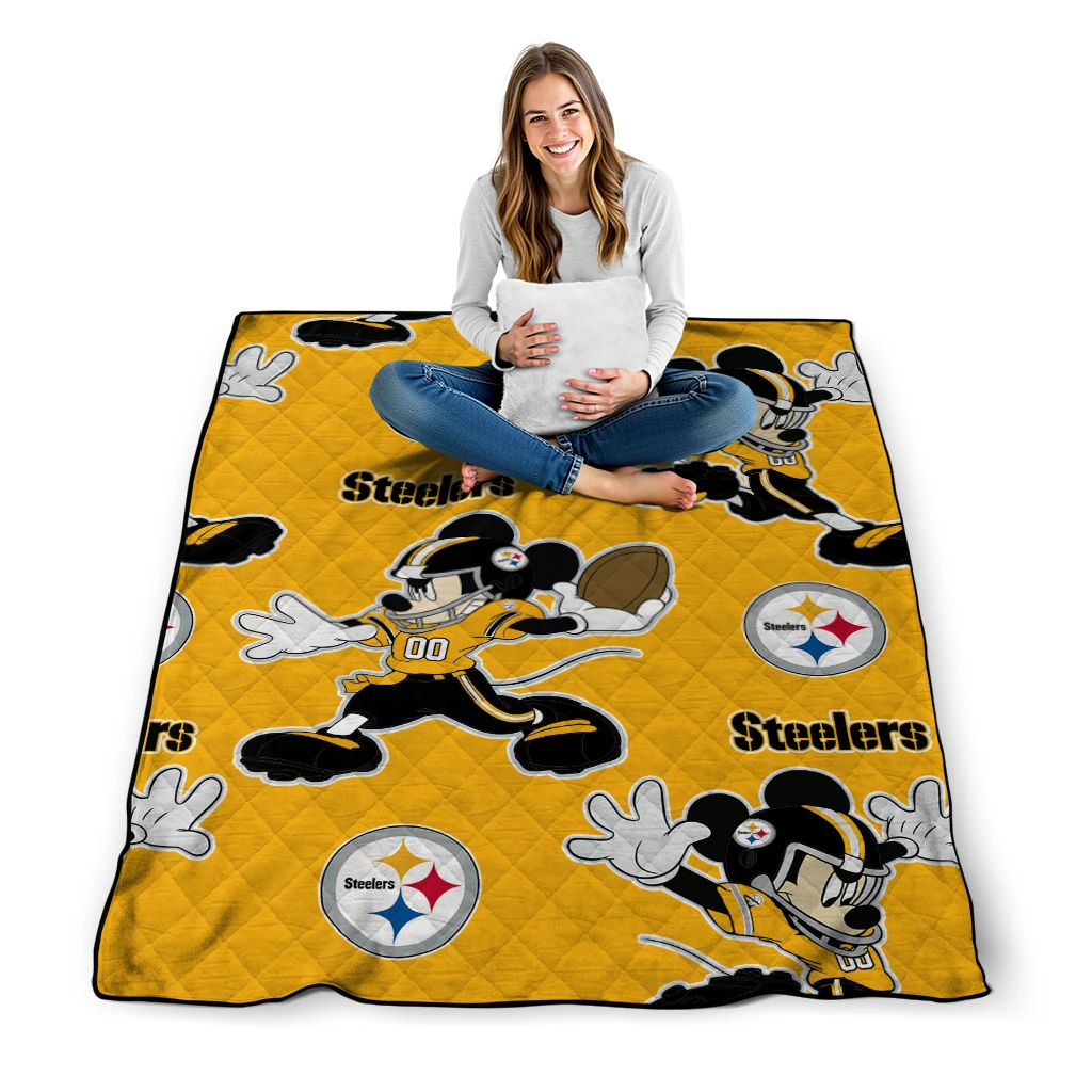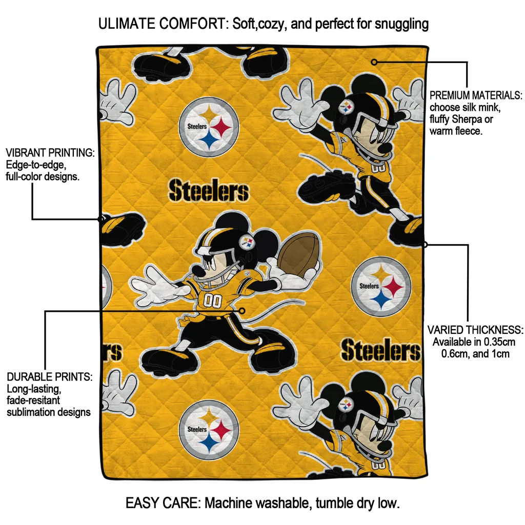 Custom Pittsburgh Steelers Mickey Football Gold Quilt Blanket