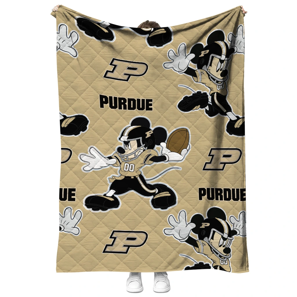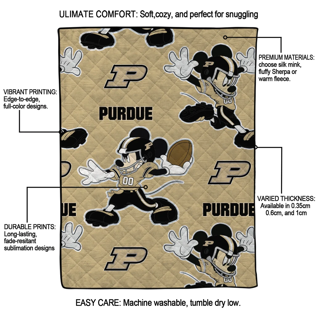 Custom Purdue Boilermakers Mickey Football Gold Quilt Blanket