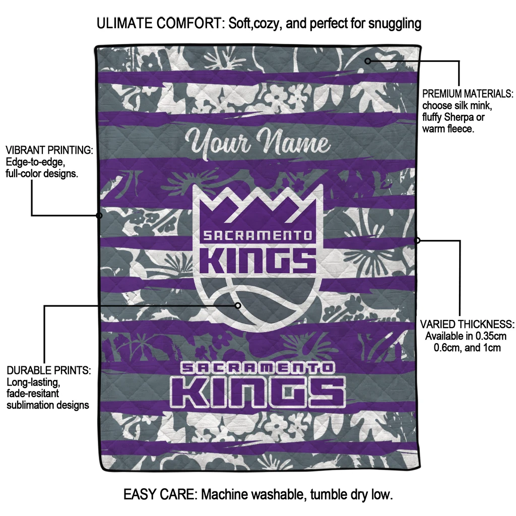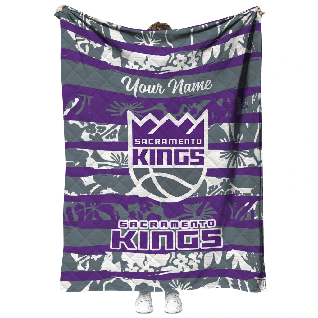 Custom Sacramento Kings Layered Florals Purple White Quilt Blanket