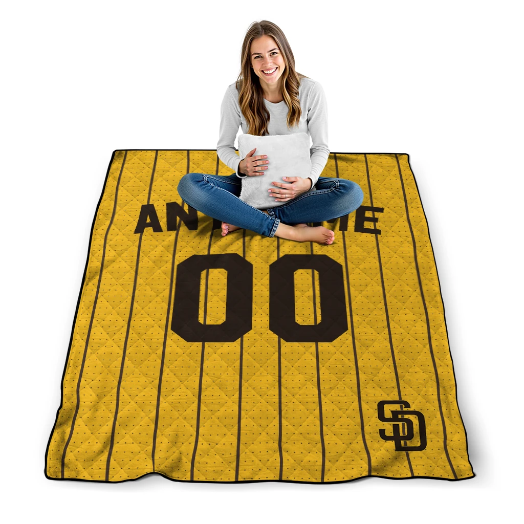 The Custom San Diego Padres Pin Dot Quilt Blanket is more than a blanket—it’s everyday comfort, thoughtfully made. Crafted from premium quilting fabric with a soft microfiber touch, it offers a smooth hand-feel and lasting coziness. Layered quilting with a cotton-filled core provides adaptable warmth across seasons while maintaining a clean, tailored look on your bed or sofa.
