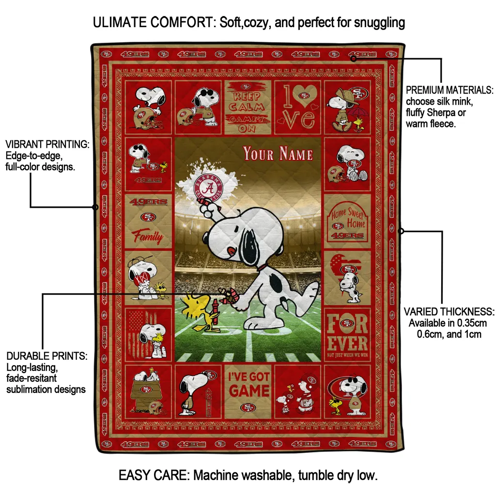 The Custom San Francisco 49ers Snoopy Coach Red Quilt Blanket is more than a blanket—it’s everyday comfort, thoughtfully made. Crafted from premium quilting fabric with a soft microfiber touch, it offers a smooth hand-feel and lasting coziness. Layered quilting with a cotton-filled core provides adaptable warmth across seasons while maintaining a clean, tailored look on your bed or sofa.