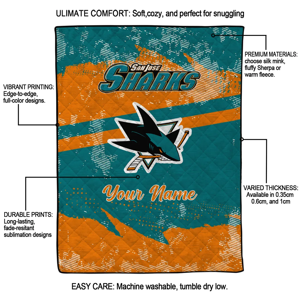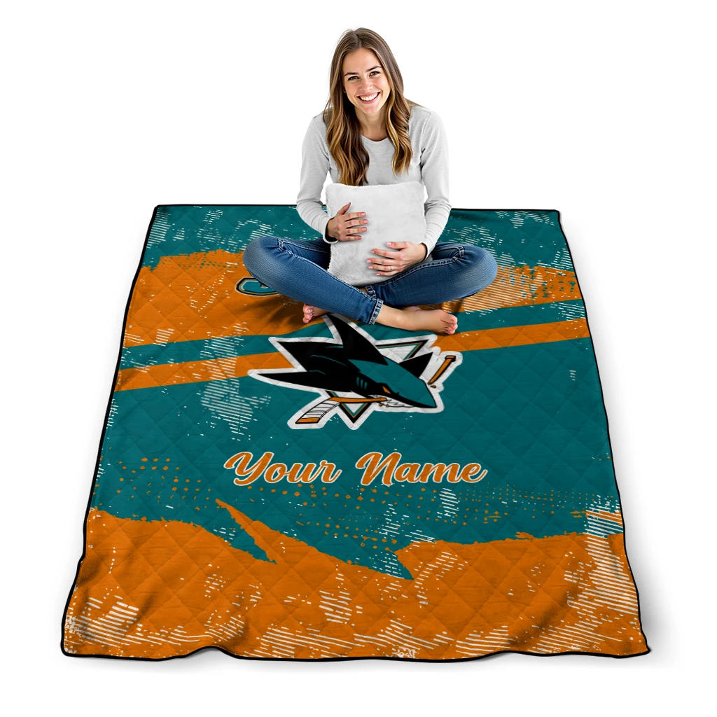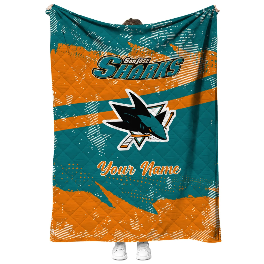 Custom San Jose Sharks Brushstroke Layers Teal Quilt Blanket