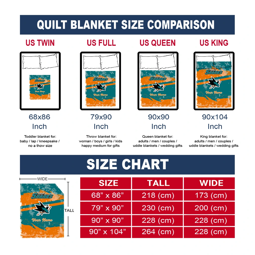 The Custom San Jose Sharks Brushstroke Layers Teal Quilt Blanket is more than a blanket—it’s everyday comfort, thoughtfully made. Crafted from premium quilting fabric with a soft microfiber touch, it offers a smooth hand-feel and lasting coziness. Layered quilting with a cotton-filled core provides adaptable warmth across seasons while maintaining a clean, tailored look on your bed or sofa.