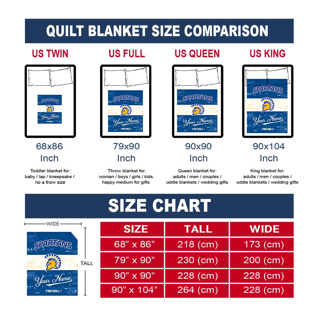 The Custom San Jose State Spartans Hibiscus Burst Blue White Quilt Blanket is more than a blanket—it’s everyday comfort, thoughtfully made. Crafted from premium quilting fabric with a soft microfiber touch, it offers a smooth hand-feel and lasting coziness. Layered quilting with a cotton-filled core provides adaptable warmth across seasons while maintaining a clean, tailored look on your bed or sofa.