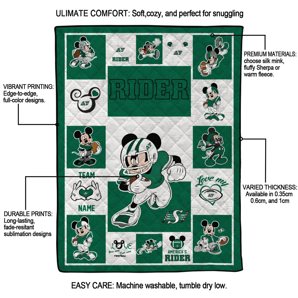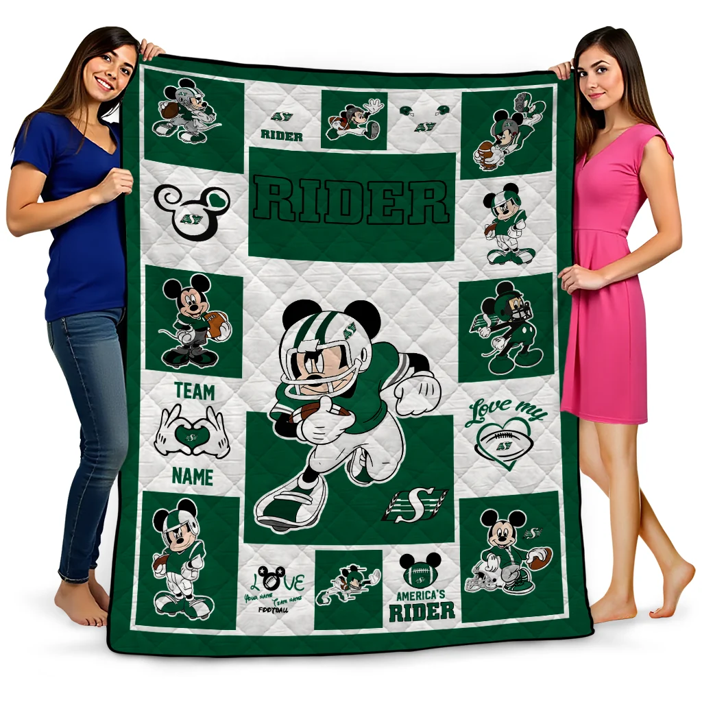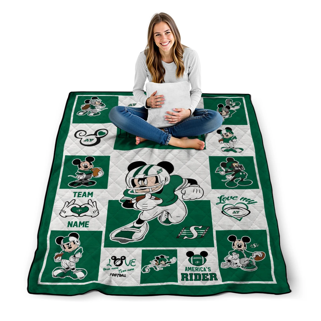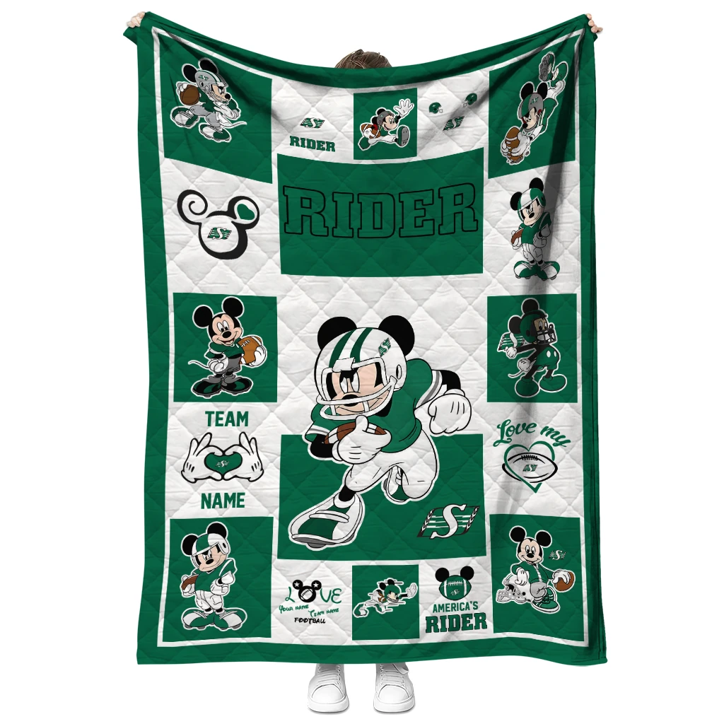 Custom Saskatchewan Roughriders Mickey Crimson Green White Quilt Blanket