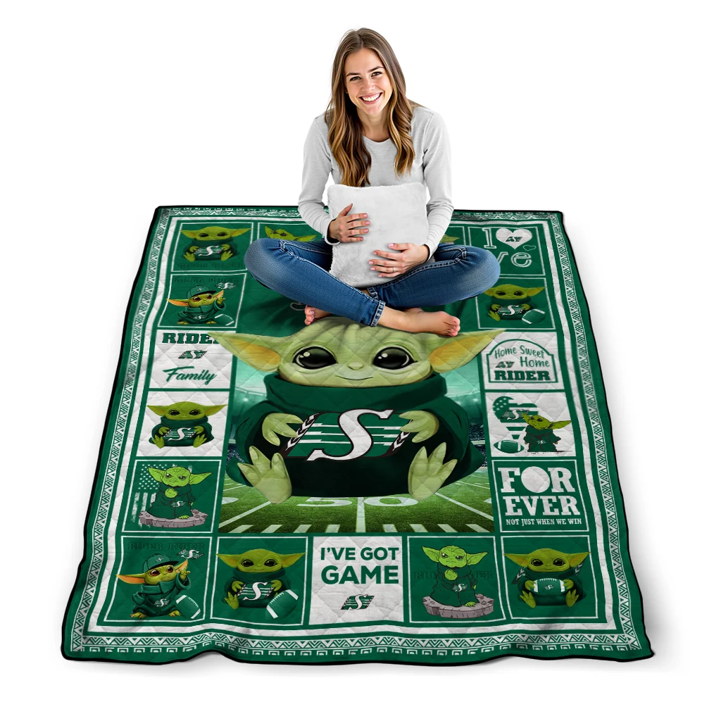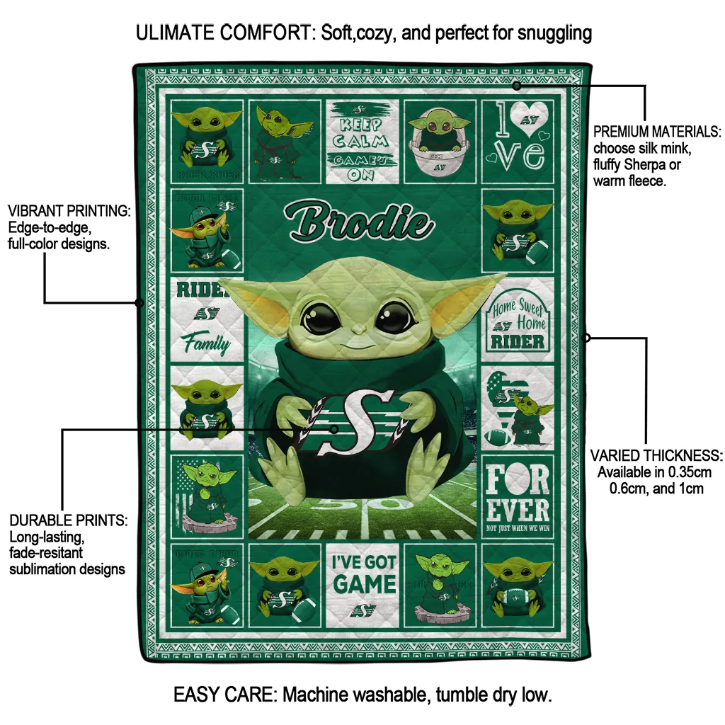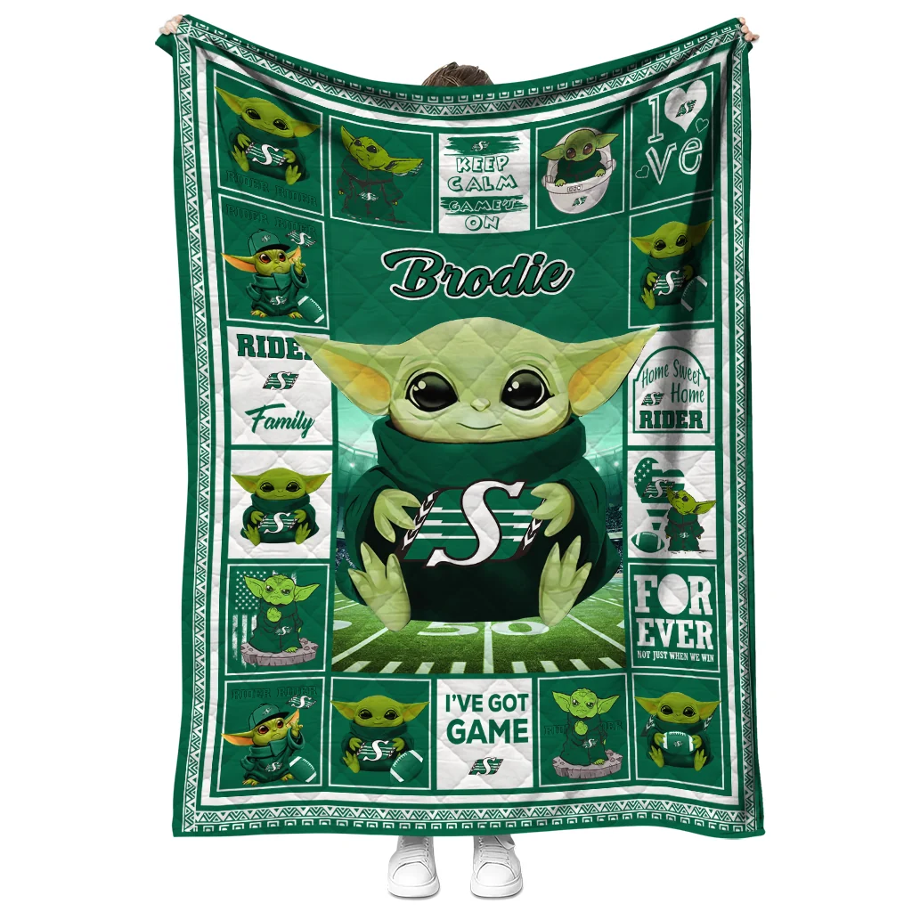 Custom Saskatchewan Roughriders Yody Baby Pattern Green Quilt Blanket