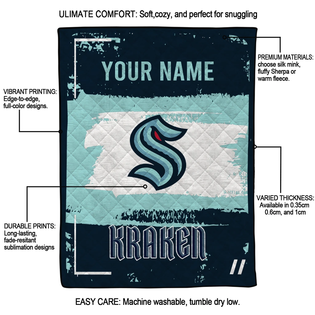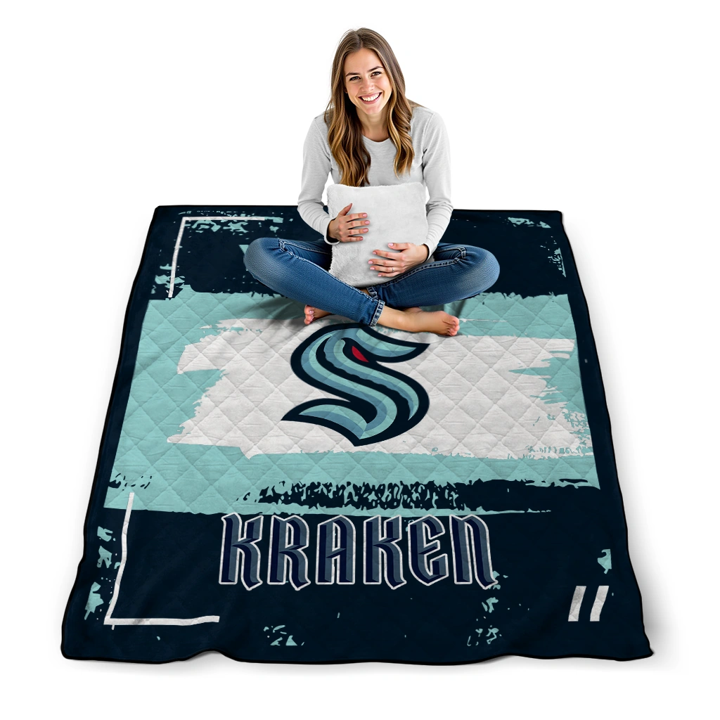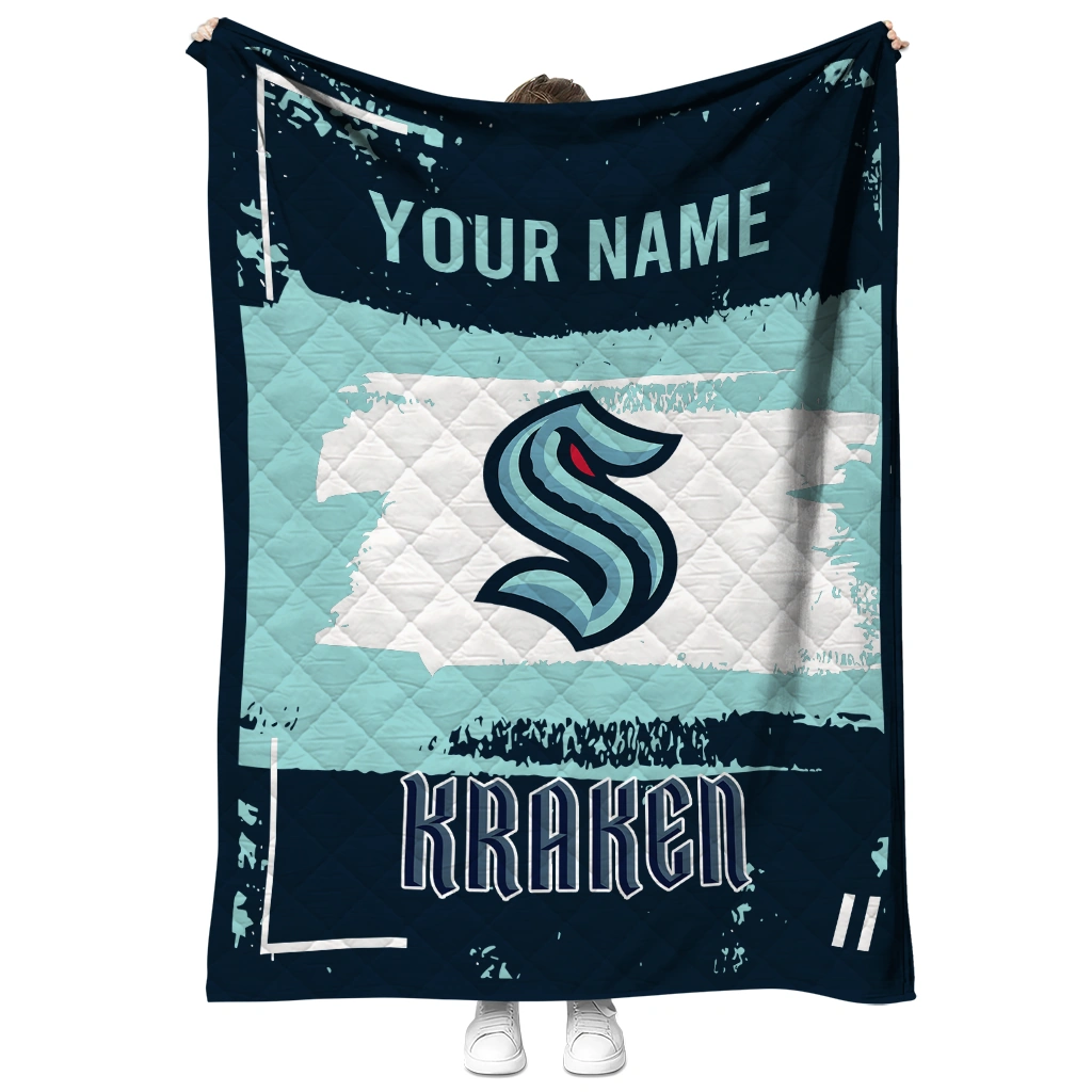 Be the first to review “Custom Seattle Kraken Grunge Patch Blue White Quilt Blanket”