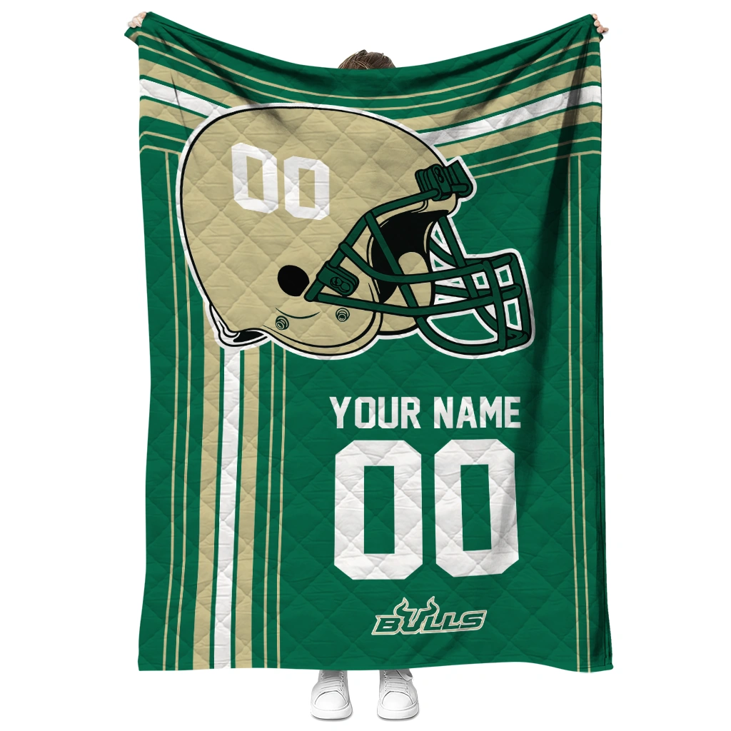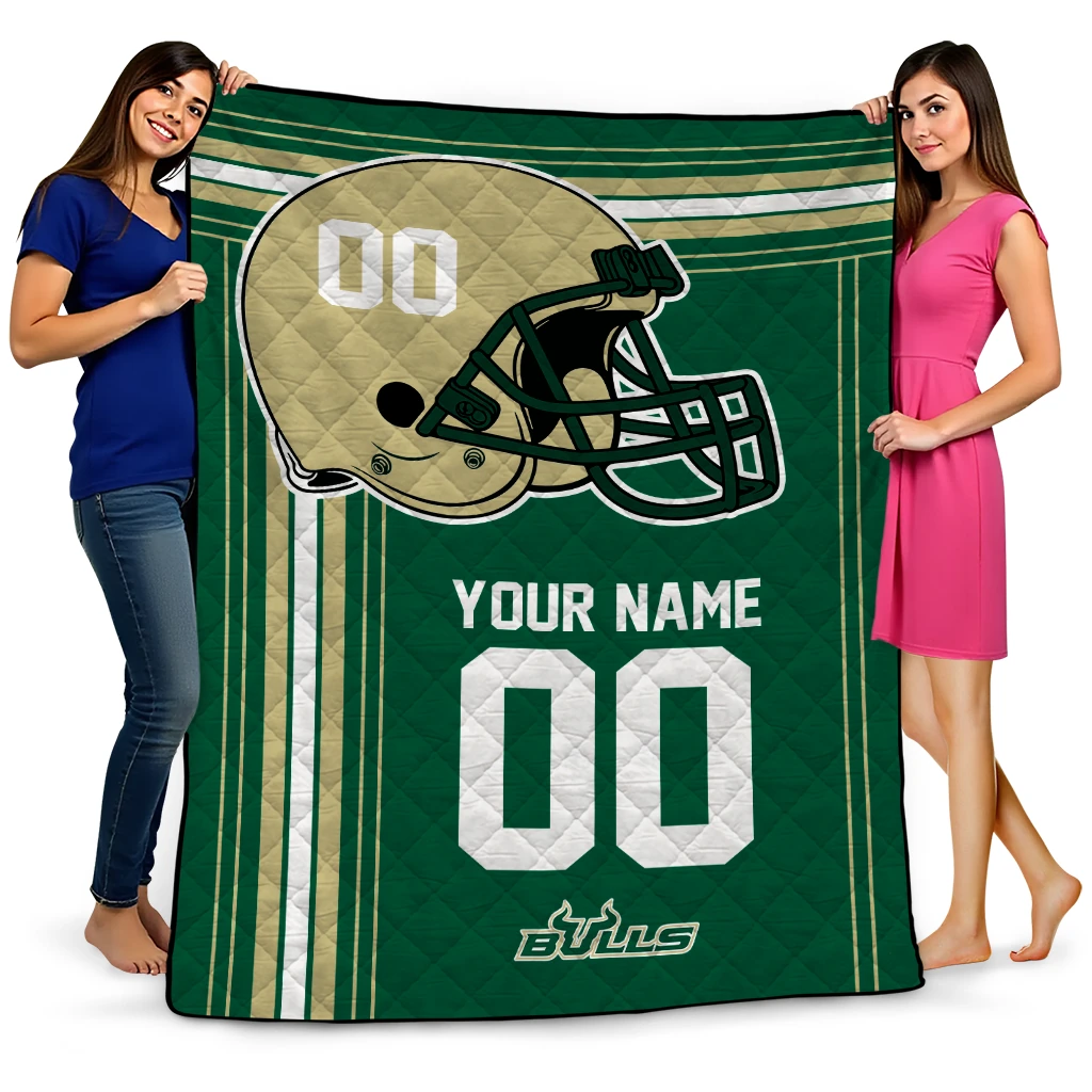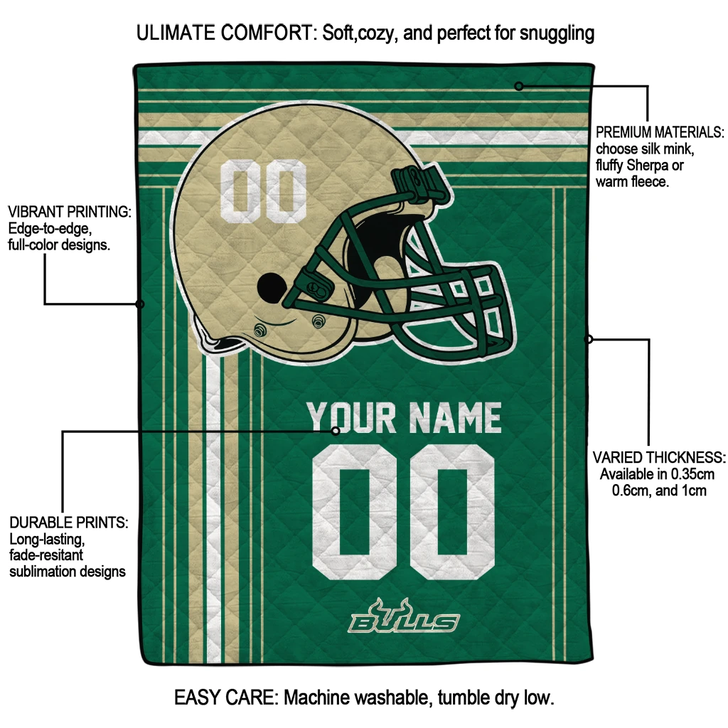 The Custom South Florida Bulls Helmet Theme Green Quilt Blanket is more than a blanket—it’s everyday comfort, thoughtfully made. Crafted from premium quilting fabric with a soft microfiber touch, it offers a smooth hand-feel and lasting coziness. Layered quilting with a cotton-filled core provides adaptable warmth across seasons while maintaining a clean, tailored look on your bed or sofa.