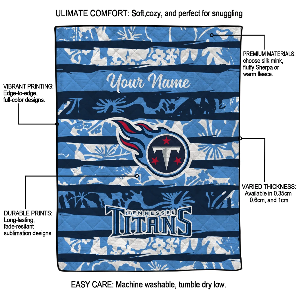 Custom Tennessee Titans Layered Florals Navy White Quilt Blanket