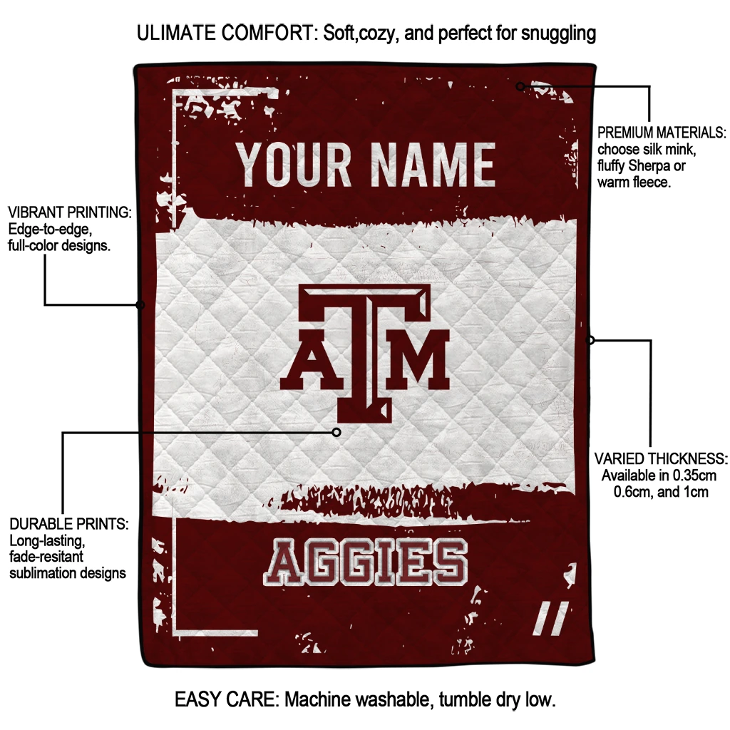 Custom Texas A&M Aggies Grunge Patch Maroon White Quilt Blanket