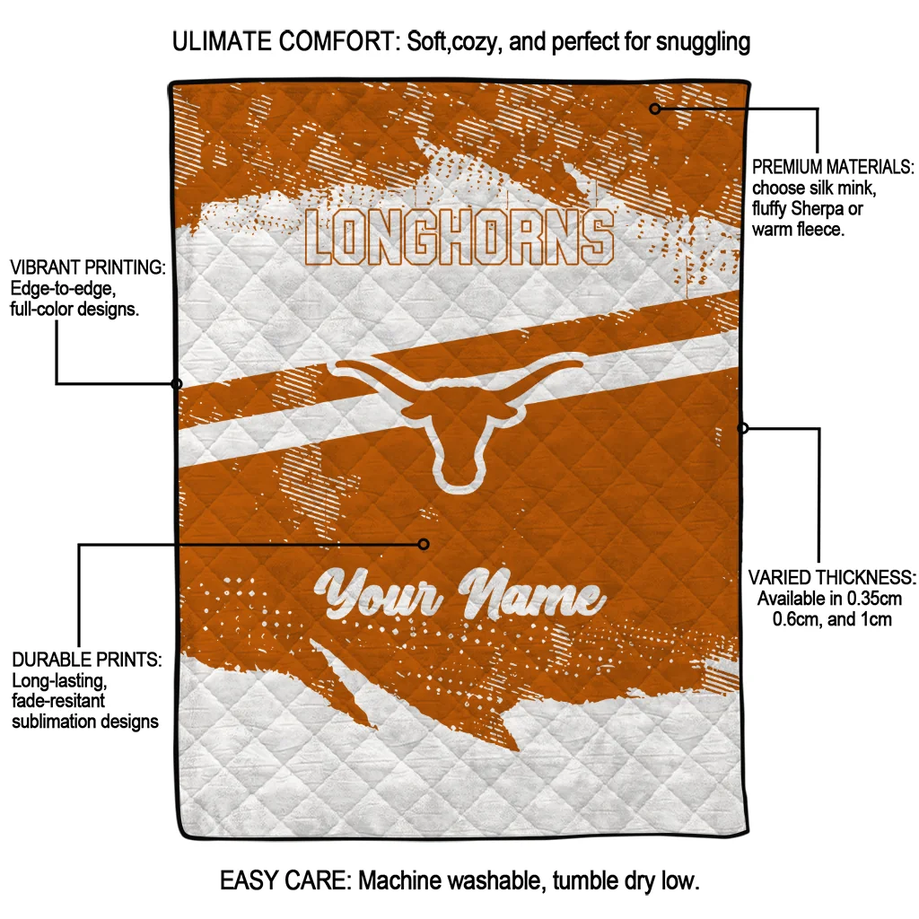 Custom Texas Longhorns Brushstroke Layers Orange Quilt Blanket
