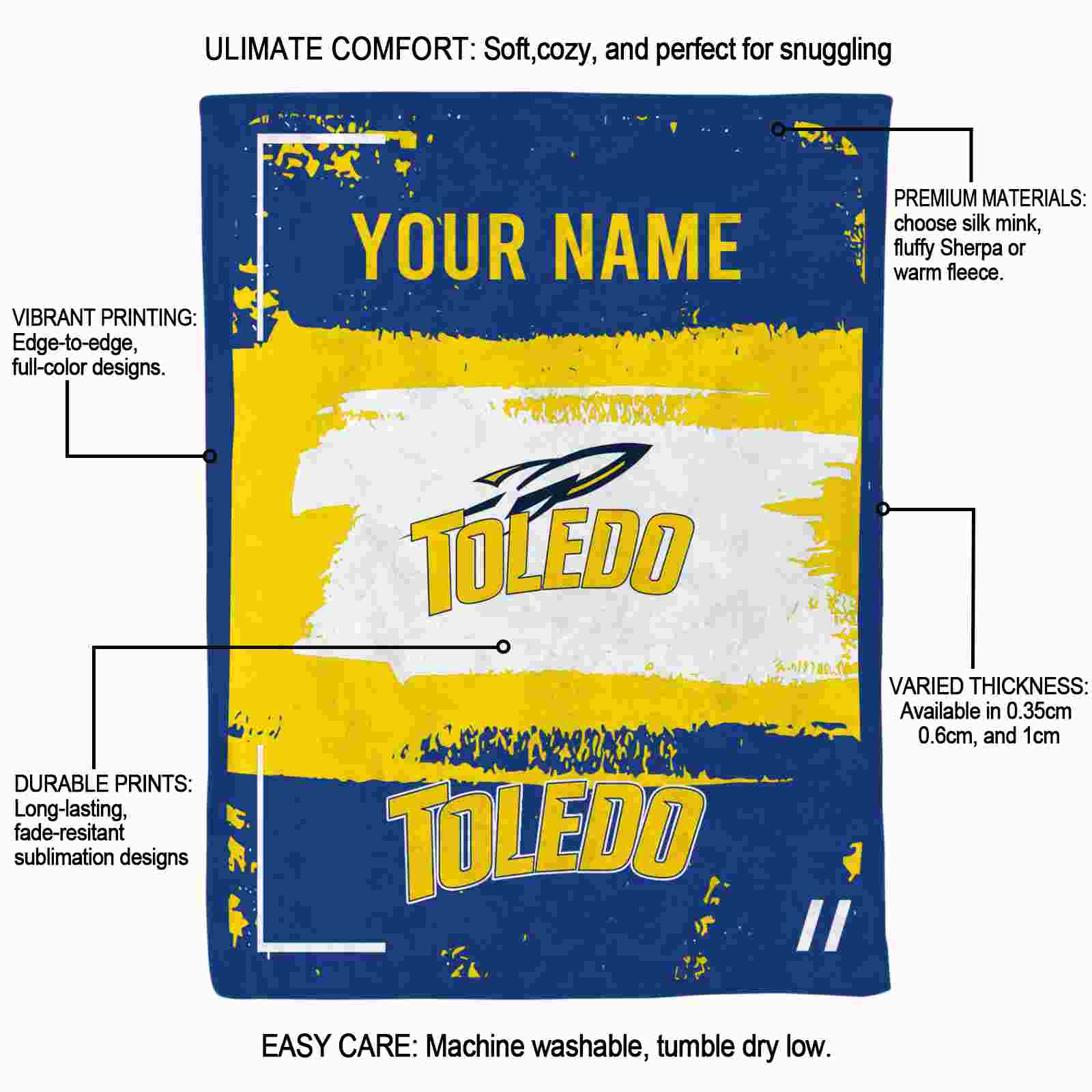 Without a doubt, the Custom Toledo Rockets Paint Strokes Blue White Blanket from Toledo Rockets Blankets collection is offering true fans a chance to showcase passion in a cool way. Personalize it with your favorite team’s logo or a meaningful name to make it uniquely yours. Isn’t that great? The full-color print ensures vibrant, edge-to-edge designs, bringing your sports enthusiasm to life!