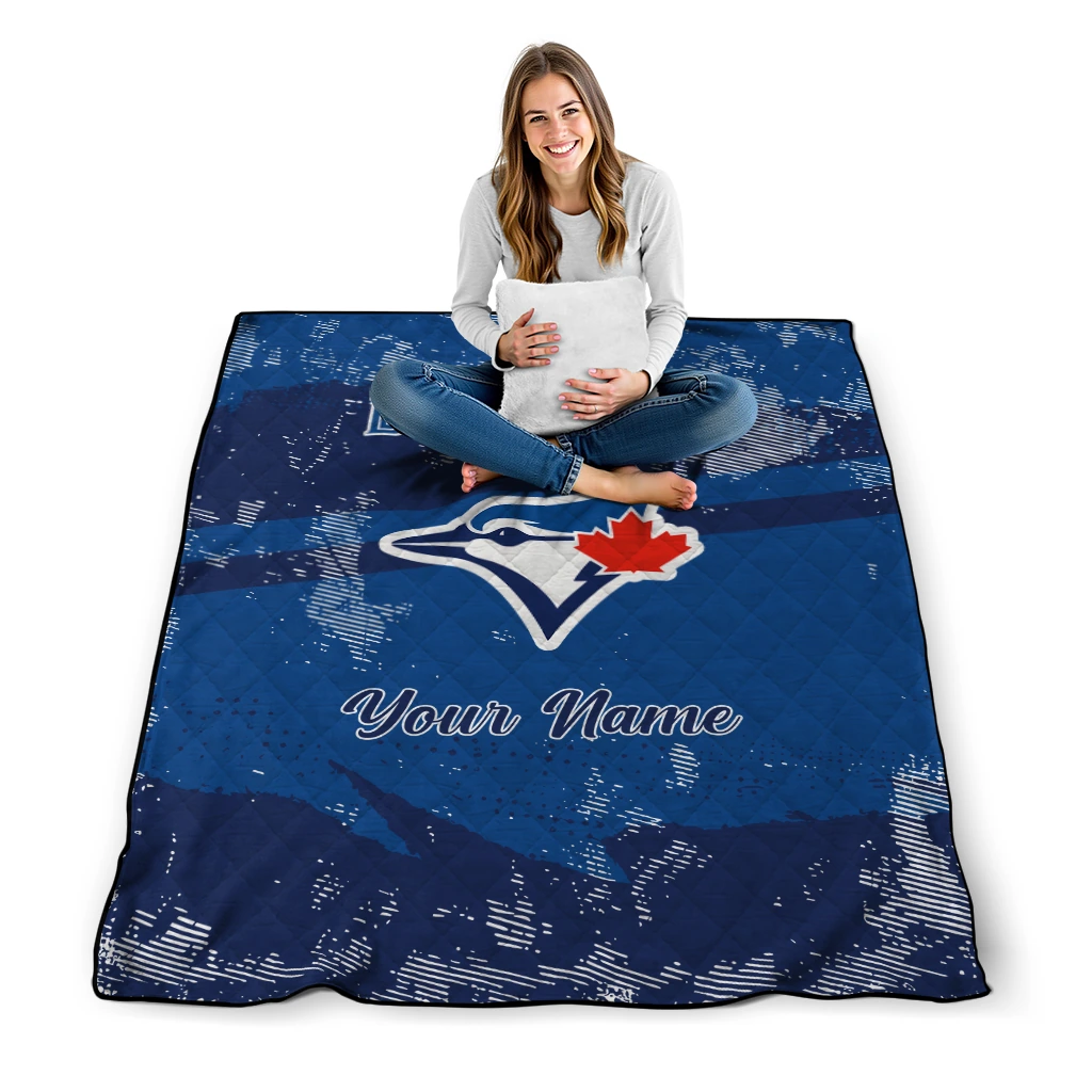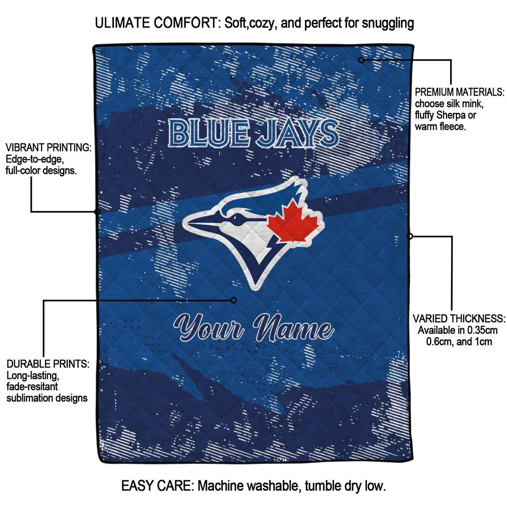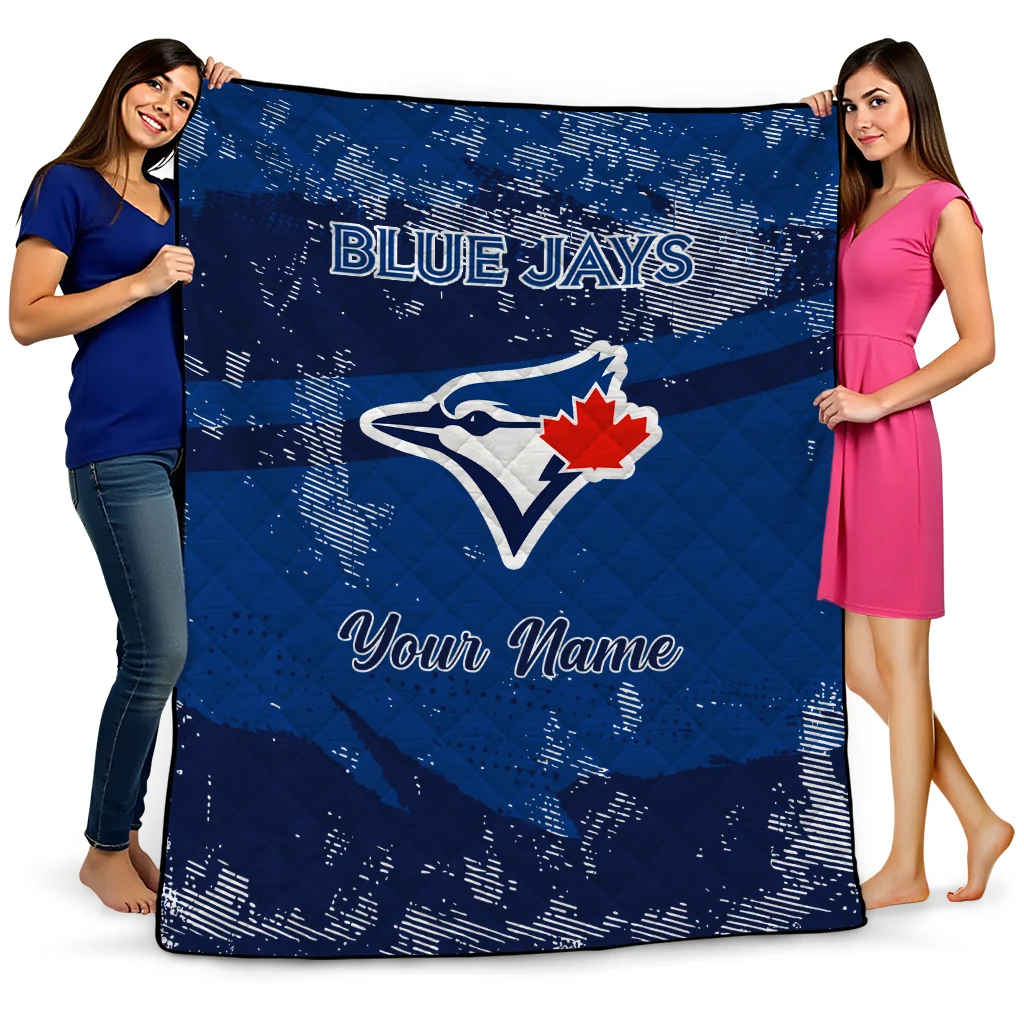 Wrap yourself in warmth and pride with the Custom Toronto Blue Jays Brushstroke Layers Blue Quilt Blanket from the Toronto Blue Jays Blankets collection at Yes That Blanket. Made from 100% premium quilting-weight polyester blended with a touch of microfiber, this quilt offers a smooth, soft finish you’ll love. Choose between two quilting styles—Stipple or Diagonal—and enjoy the comfort of a cotton-filled layer inside that adds extra coziness for every season. The border is available in classic black or white, giving your design a clean, timeless edge.