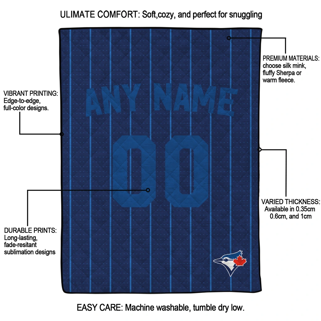 Wrap yourself in warmth and pride with the Custom Toronto Blue Jays Pin Dot Quilt Blanket from the Toronto Blue Jays Blankets collection at Yes That Blanket. Made from 100% premium quilting-weight polyester blended with a touch of microfiber, this quilt offers a smooth, soft finish you’ll love. Choose between two quilting styles—Stipple or Diagonal—and enjoy the comfort of a cotton-filled layer inside that adds extra coziness for every season. The border is available in classic black or white, giving your design a clean, timeless edge.