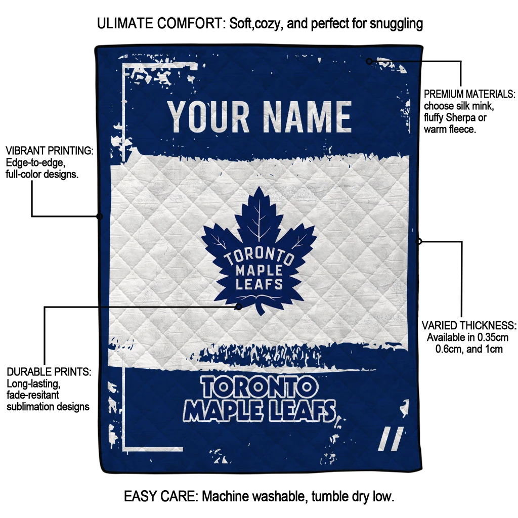 The Custom Toronto Maple Leafs Grunge Patch Blue White Quilt Blanket is more than a blanket—it’s everyday comfort, thoughtfully made. Crafted from premium quilting fabric with a soft microfiber touch, it offers a smooth hand-feel and lasting coziness. Layered quilting with a cotton-filled core provides adaptable warmth across seasons while maintaining a clean, tailored look on your bed or sofa.