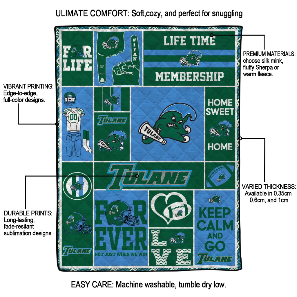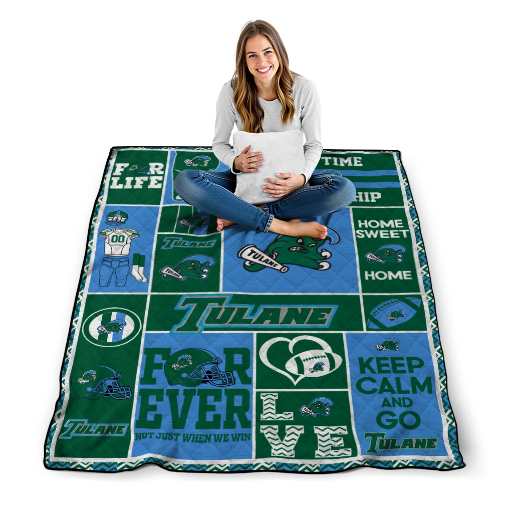 The Custom Tulane Green Wave Helmet Passion Green Quilt Blanket is more than a blanket—it’s everyday comfort, thoughtfully made. Crafted from premium quilting fabric with a soft microfiber touch, it offers a smooth hand-feel and lasting coziness. Layered quilting with a cotton-filled core provides adaptable warmth across seasons while maintaining a clean, tailored look on your bed or sofa.