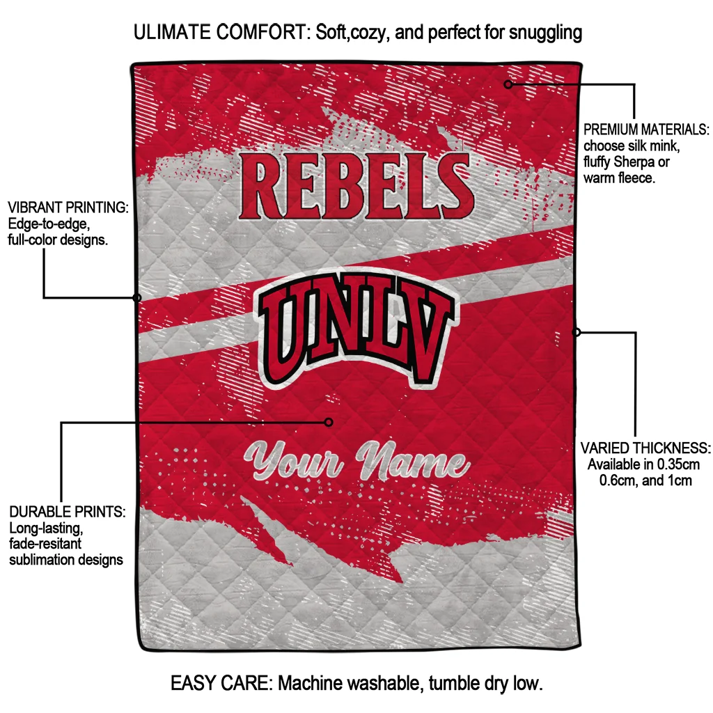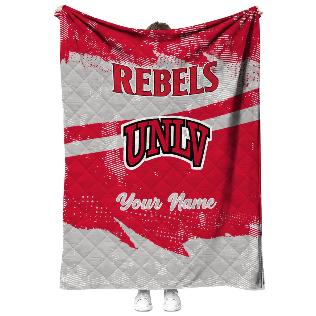 Wrap yourself in warmth and pride with the Custom UNLV Rebels Brushstroke Layers Red Quilt Blanket from the UNLV Rebels Blankets collection at Yes That Blanket. Made from 100% premium quilting-weight polyester blended with a touch of microfiber, this quilt offers a smooth, soft finish you’ll love. Choose between two quilting styles—Stipple or Diagonal—and enjoy the comfort of a cotton-filled layer inside that adds extra coziness for every season. The border is available in classic black or white, giving your design a clean, timeless edge.