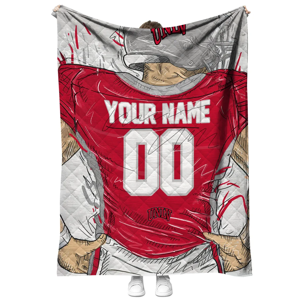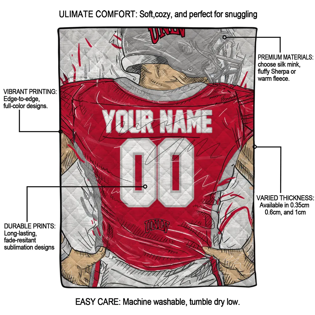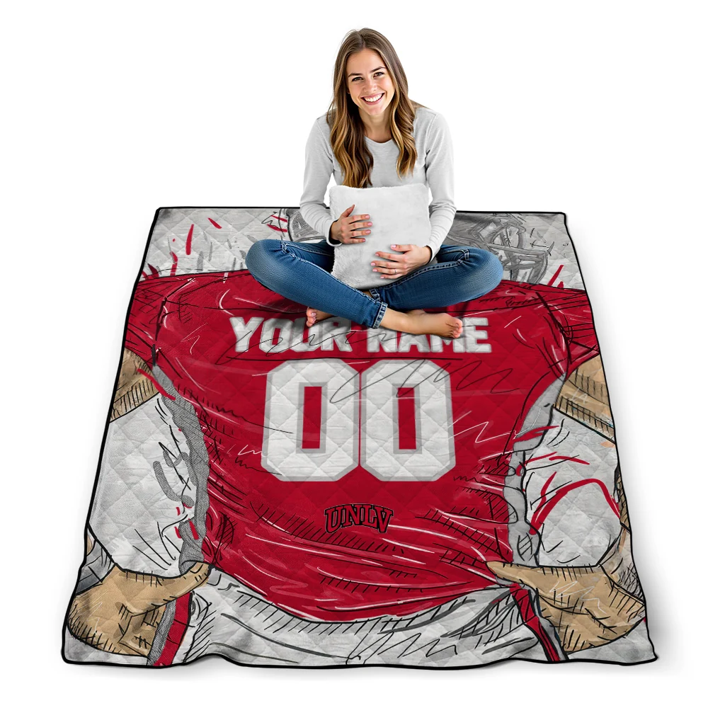 The Custom UNLV Rebels Player Sketch Red Gray Quilt Blanket is more than a blanket—it’s everyday comfort, thoughtfully made. Crafted from premium quilting fabric with a soft microfiber touch, it offers a smooth hand-feel and lasting coziness. Layered quilting with a cotton-filled core provides adaptable warmth across seasons while maintaining a clean, tailored look on your bed or sofa.