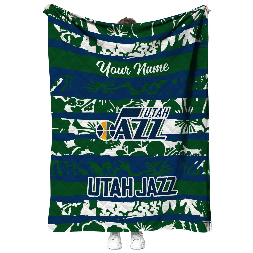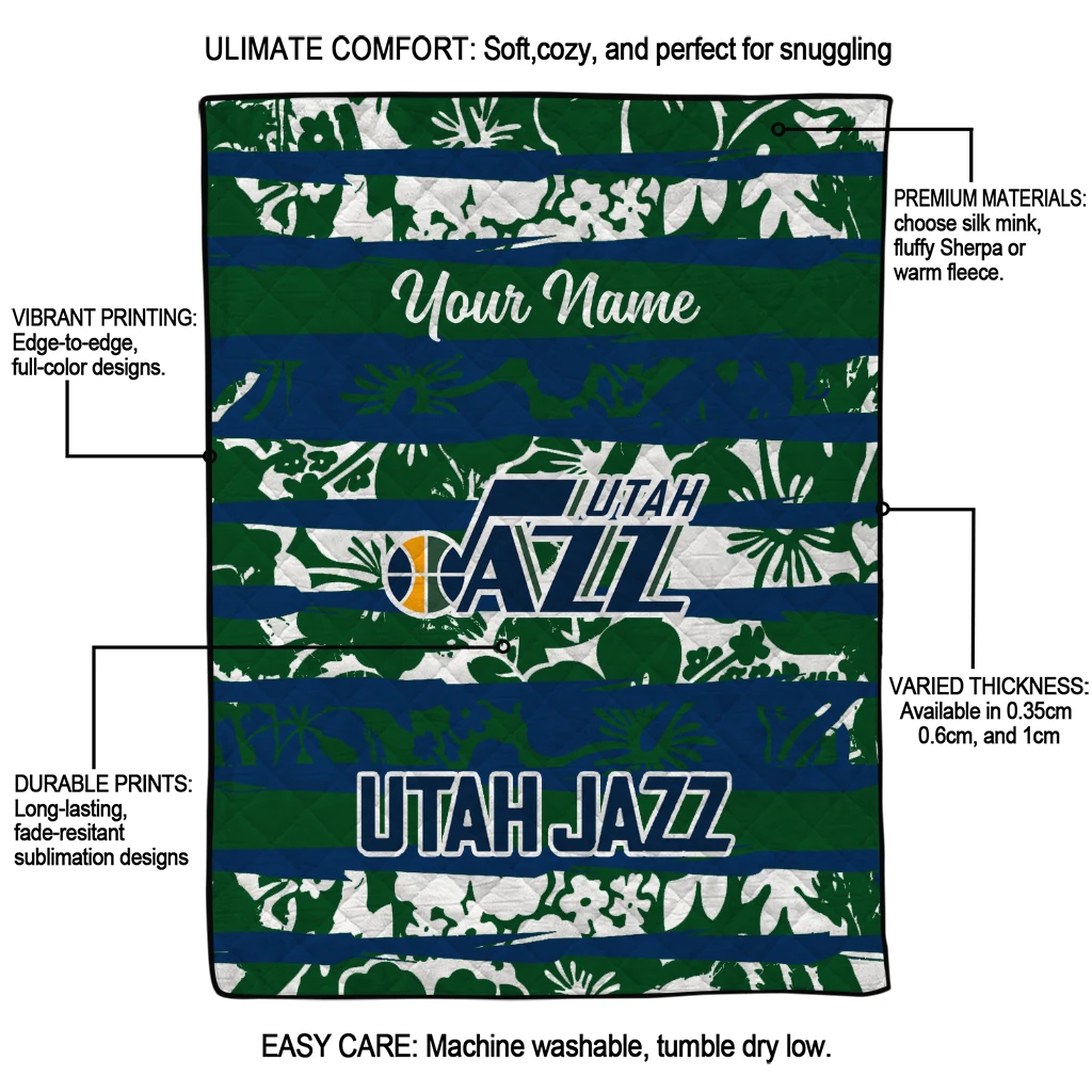 Wrap yourself in warmth and pride with the Custom Utah Jazz Layered Florals Navy White Quilt Blanket from the Utah Jazz Blankets collection at Yes That Blanket. Made from 100% premium quilting-weight polyester blended with a touch of microfiber, this quilt offers a smooth, soft finish you’ll love. Choose between two quilting styles—Stipple or Diagonal—and enjoy the comfort of a cotton-filled layer inside that adds extra coziness for every season. The border is available in classic black or white, giving your design a clean, timeless edge.