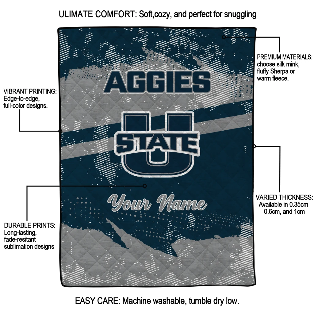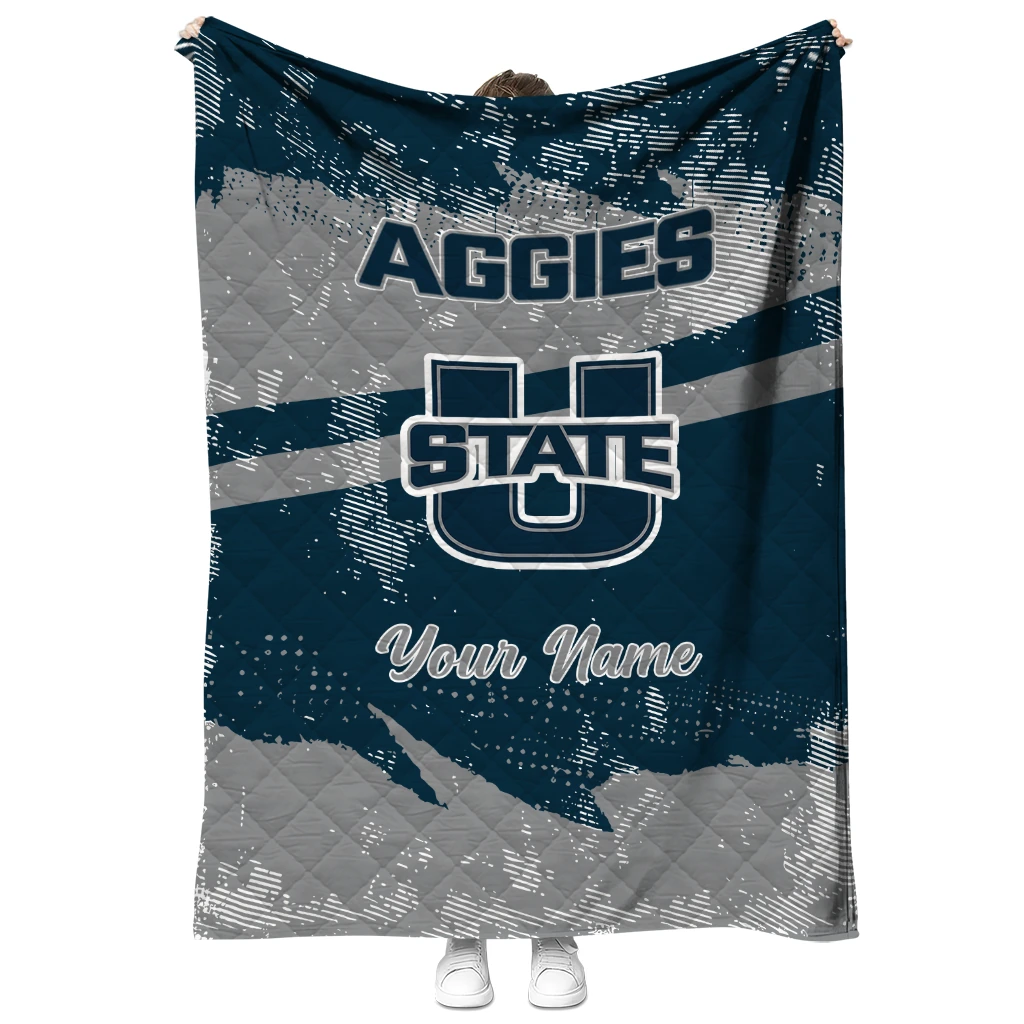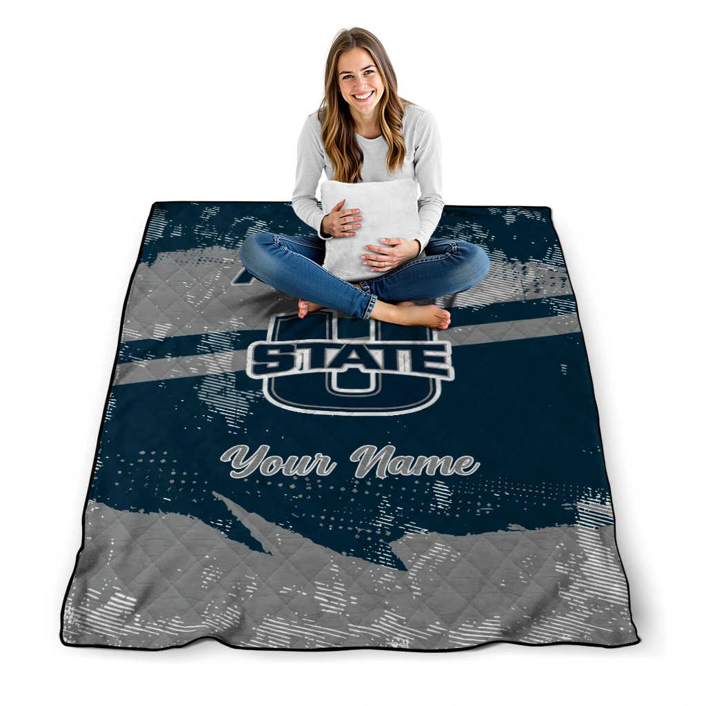 Wrap yourself in warmth and pride with the Custom Utah State Aggies Brushstroke Layers Navy Quilt Blanket from the Utah State Aggies Blankets collection at Yes That Blanket. Made from 100% premium quilting-weight polyester blended with a touch of microfiber, this quilt offers a smooth, soft finish you’ll love. Choose between two quilting styles—Stipple or Diagonal—and enjoy the comfort of a cotton-filled layer inside that adds extra coziness for every season. The border is available in classic black or white, giving your design a clean, timeless edge.