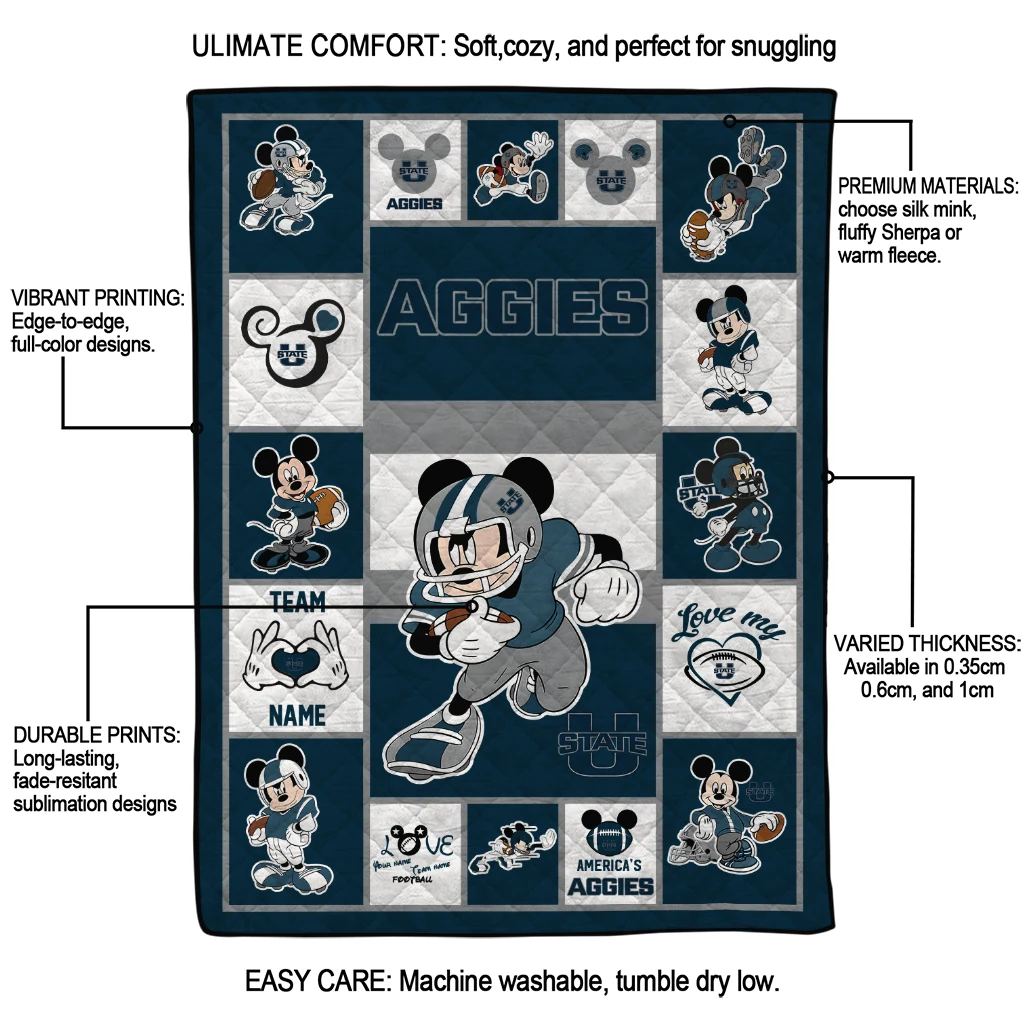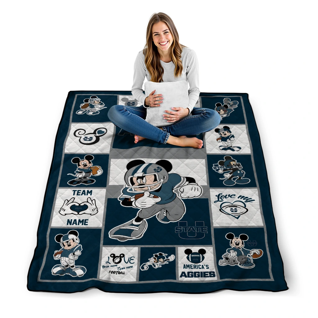 Custom Utah State Aggies Mickey Crimson Navy White Quilt Blanket