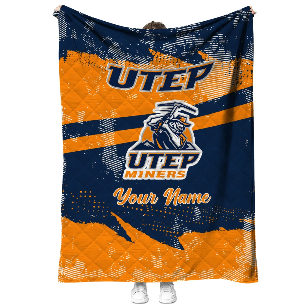 Wrap yourself in warmth and pride with the Custom UTEP Miners Brushstroke Layers Blue Quilt Blanket from the UTEP Miners Blankets collection at Yes That Blanket. Made from 100% premium quilting-weight polyester blended with a touch of microfiber, this quilt offers a smooth, soft finish you’ll love. Choose between two quilting styles—Stipple or Diagonal—and enjoy the comfort of a cotton-filled layer inside that adds extra coziness for every season. The border is available in classic black or white, giving your design a clean, timeless edge.