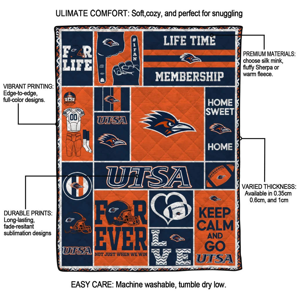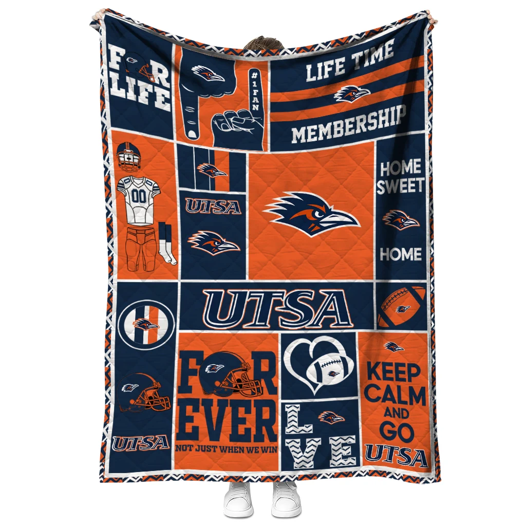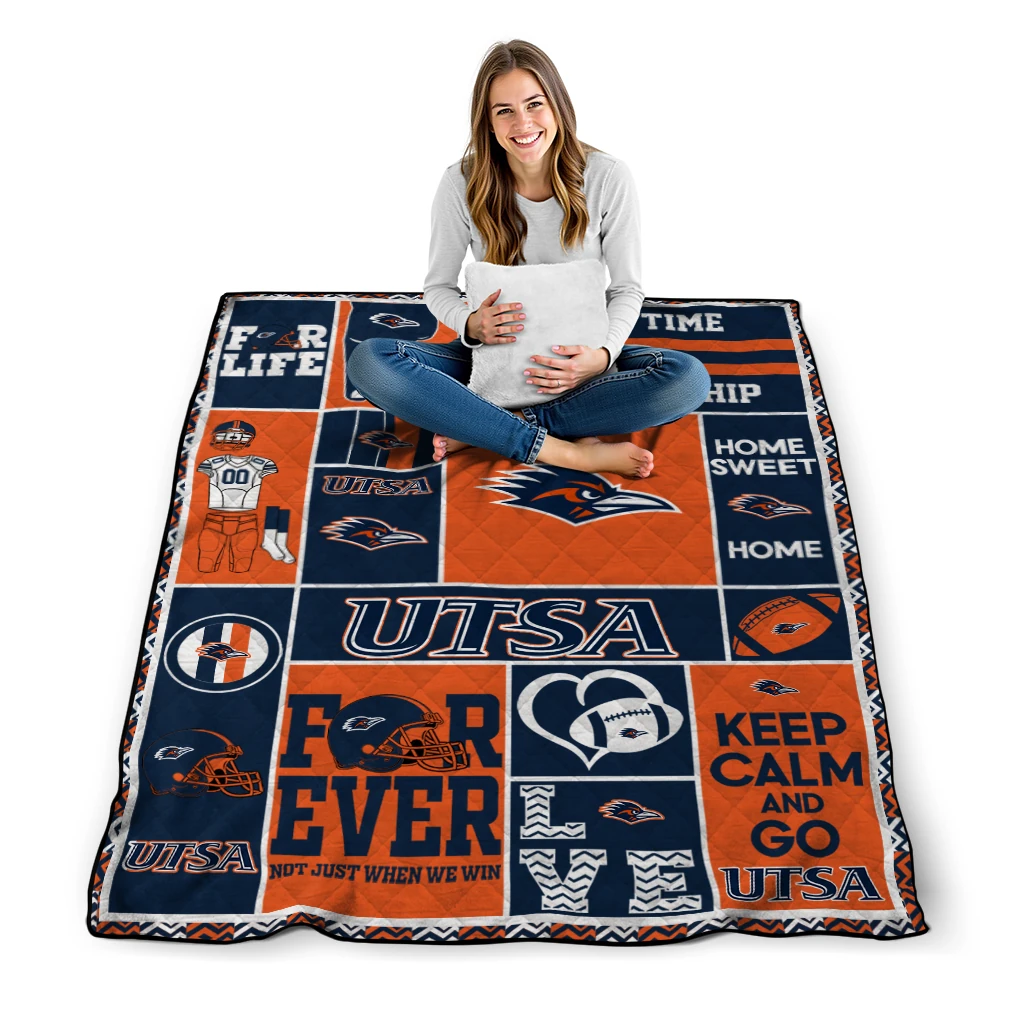 Custom UTSA Roadrunners Helmet Passion Orange Quilt Blanket