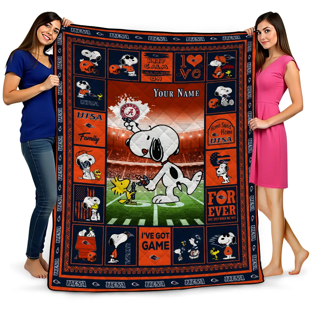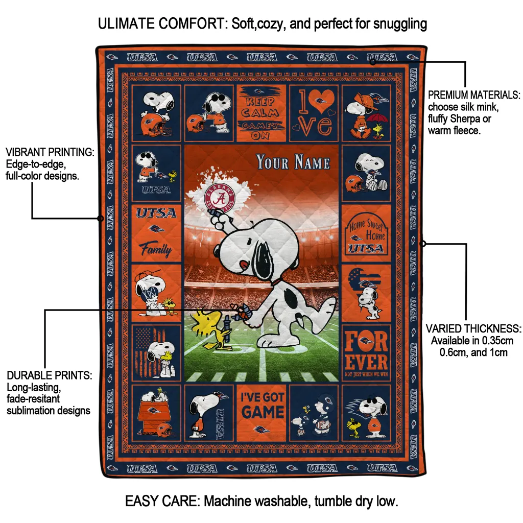 The Custom UTSA Roadrunners Snoopy Coach Orange Quilt Blanket is more than a blanket—it’s everyday comfort, thoughtfully made. Crafted from premium quilting fabric with a soft microfiber touch, it offers a smooth hand-feel and lasting coziness. Layered quilting with a cotton-filled core provides adaptable warmth across seasons while maintaining a clean, tailored look on your bed or sofa.