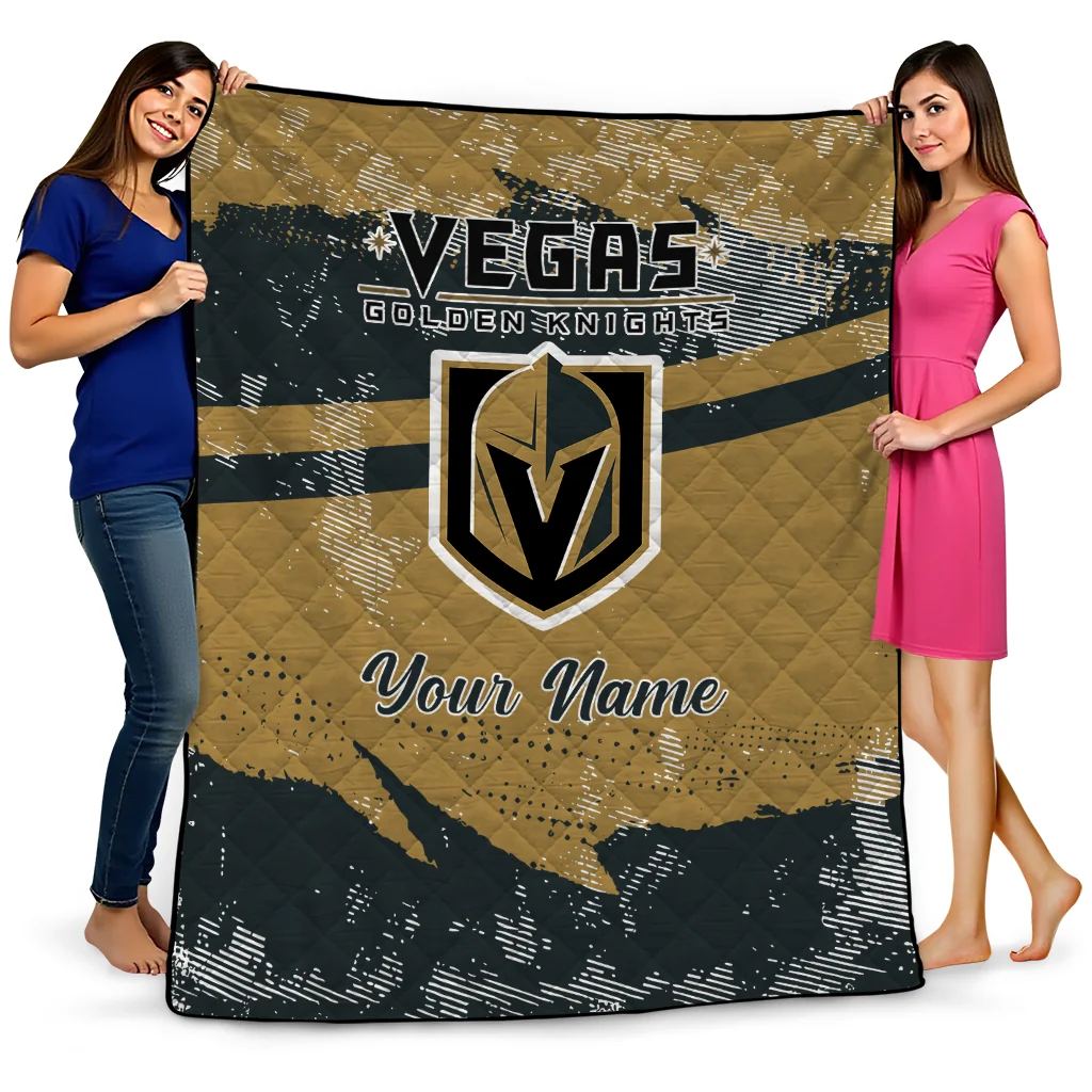 Wrap yourself in warmth and pride with the Custom Vegas Golden Knights Brushstroke Layers Tan Quilt Blanket from the Vegas Golden Knights Blankets collection at Yes That Blanket. Made from 100% premium quilting-weight polyester blended with a touch of microfiber, this quilt offers a smooth, soft finish you’ll love. Choose between two quilting styles—Stipple or Diagonal—and enjoy the comfort of a cotton-filled layer inside that adds extra coziness for every season. The border is available in classic black or white, giving your design a clean, timeless edge.