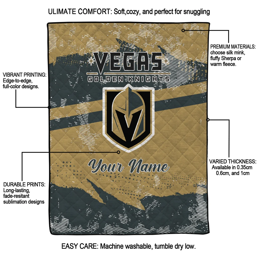 The Custom Vegas Golden Knights Brushstroke Layers Tan Quilt Blanket is more than a blanket—it’s everyday comfort, thoughtfully made. Crafted from premium quilting fabric with a soft microfiber touch, it offers a smooth hand-feel and lasting coziness. Layered quilting with a cotton-filled core provides adaptable warmth across seasons while maintaining a clean, tailored look on your bed or sofa.