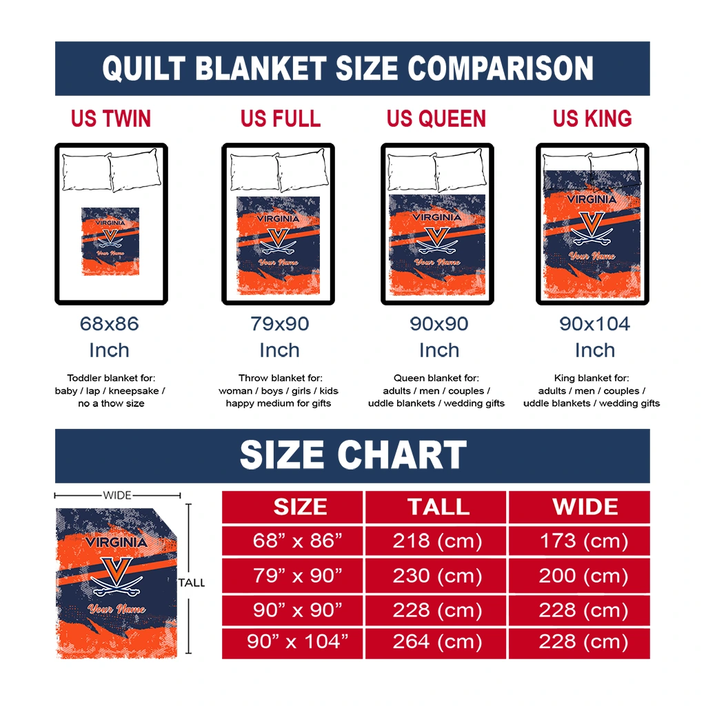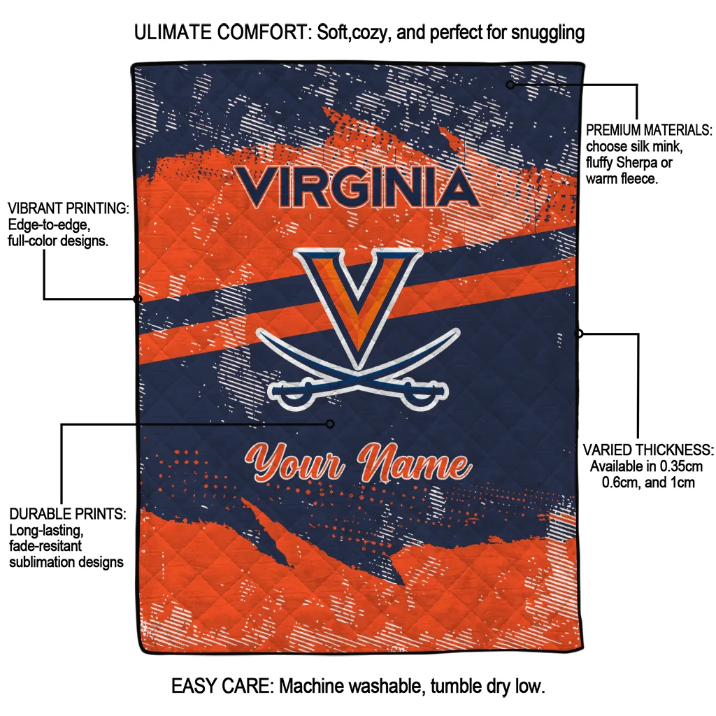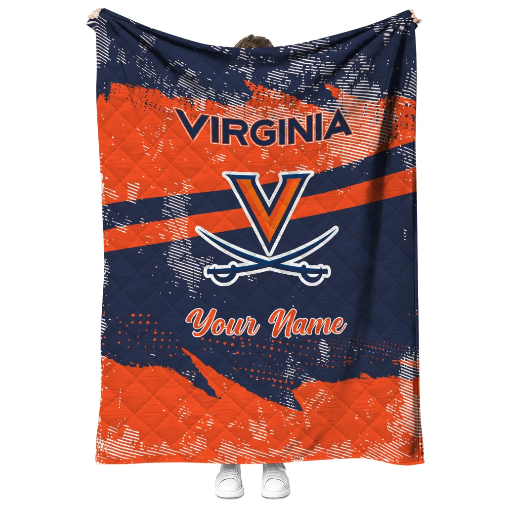 Wrap yourself in warmth and pride with the Custom Virginia Cavaliers Brushstroke Layers Blue Quilt Blanket from the Virginia Cavaliers Blankets collection at Yes That Blanket. Made from 100% premium quilting-weight polyester blended with a touch of microfiber, this quilt offers a smooth, soft finish you’ll love. Choose between two quilting styles—Stipple or Diagonal—and enjoy the comfort of a cotton-filled layer inside that adds extra coziness for every season. The border is available in classic black or white, giving your design a clean, timeless edge.