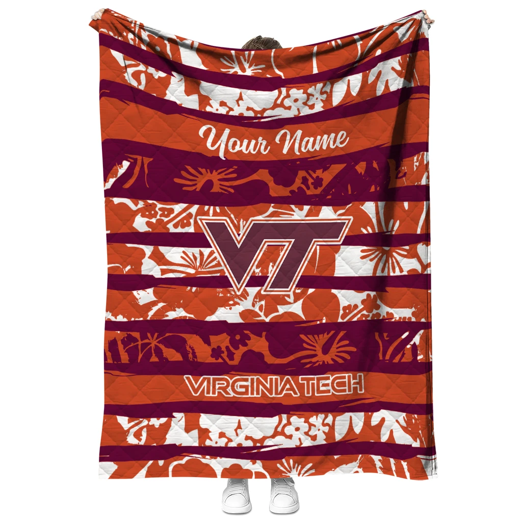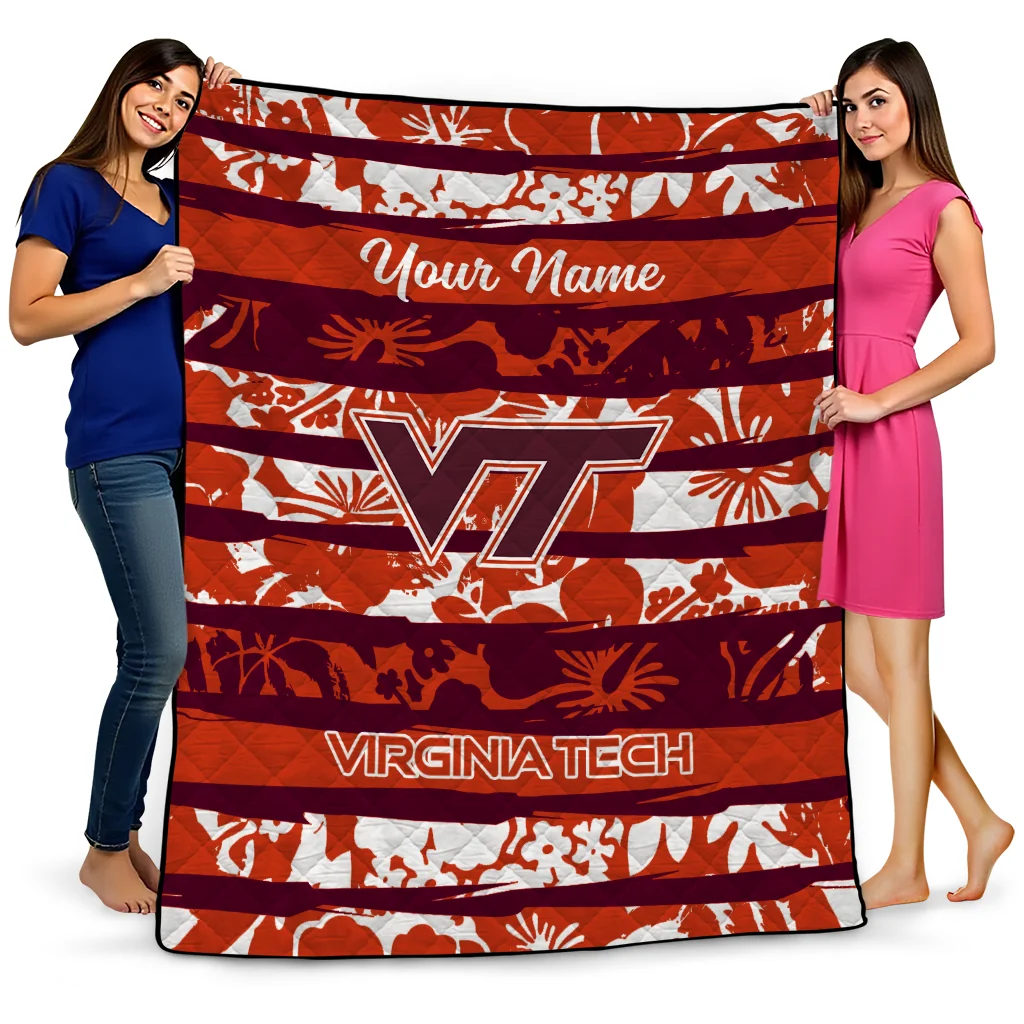 Custom Virginia Tech Hokies Layered Florals Maroon White Quilt Blanket