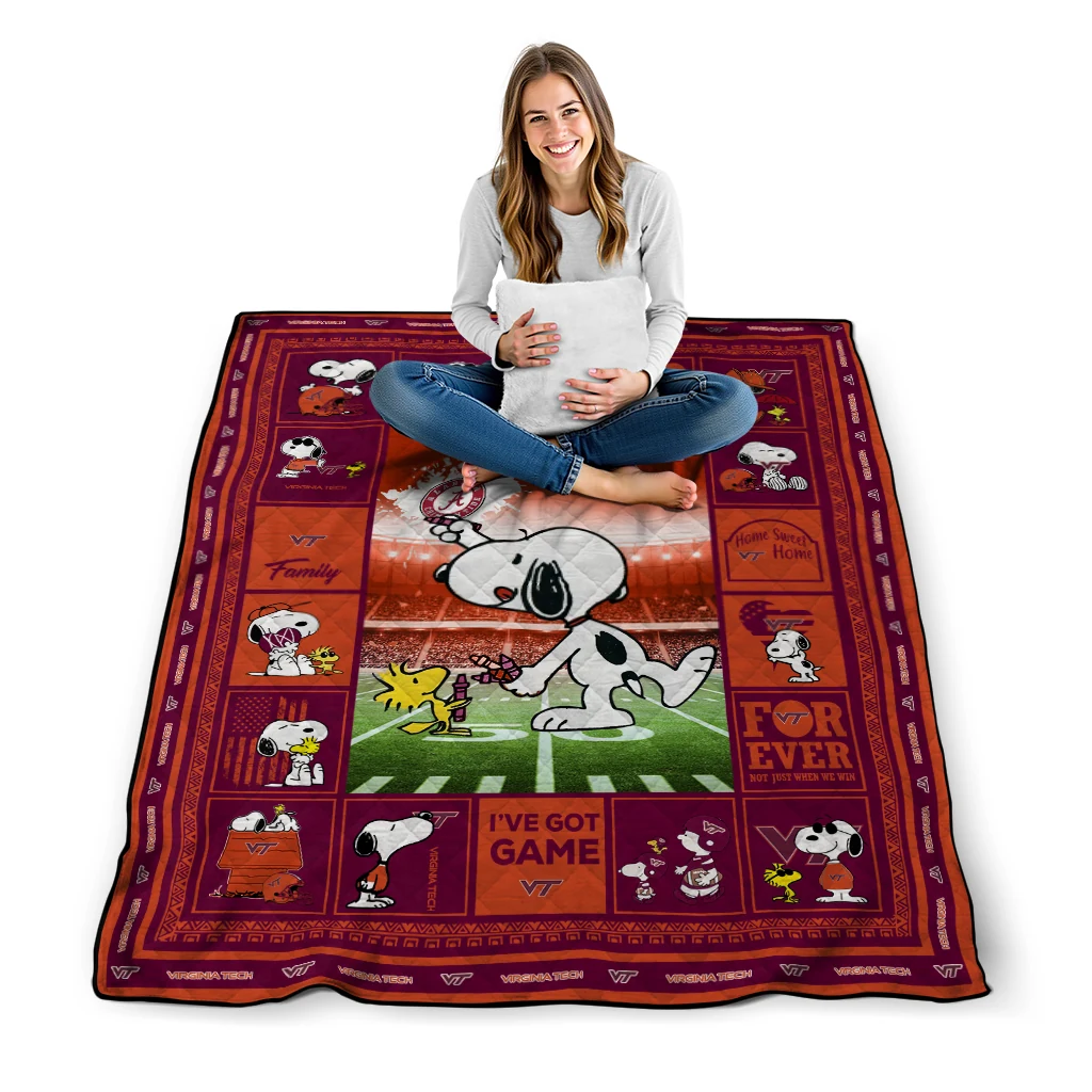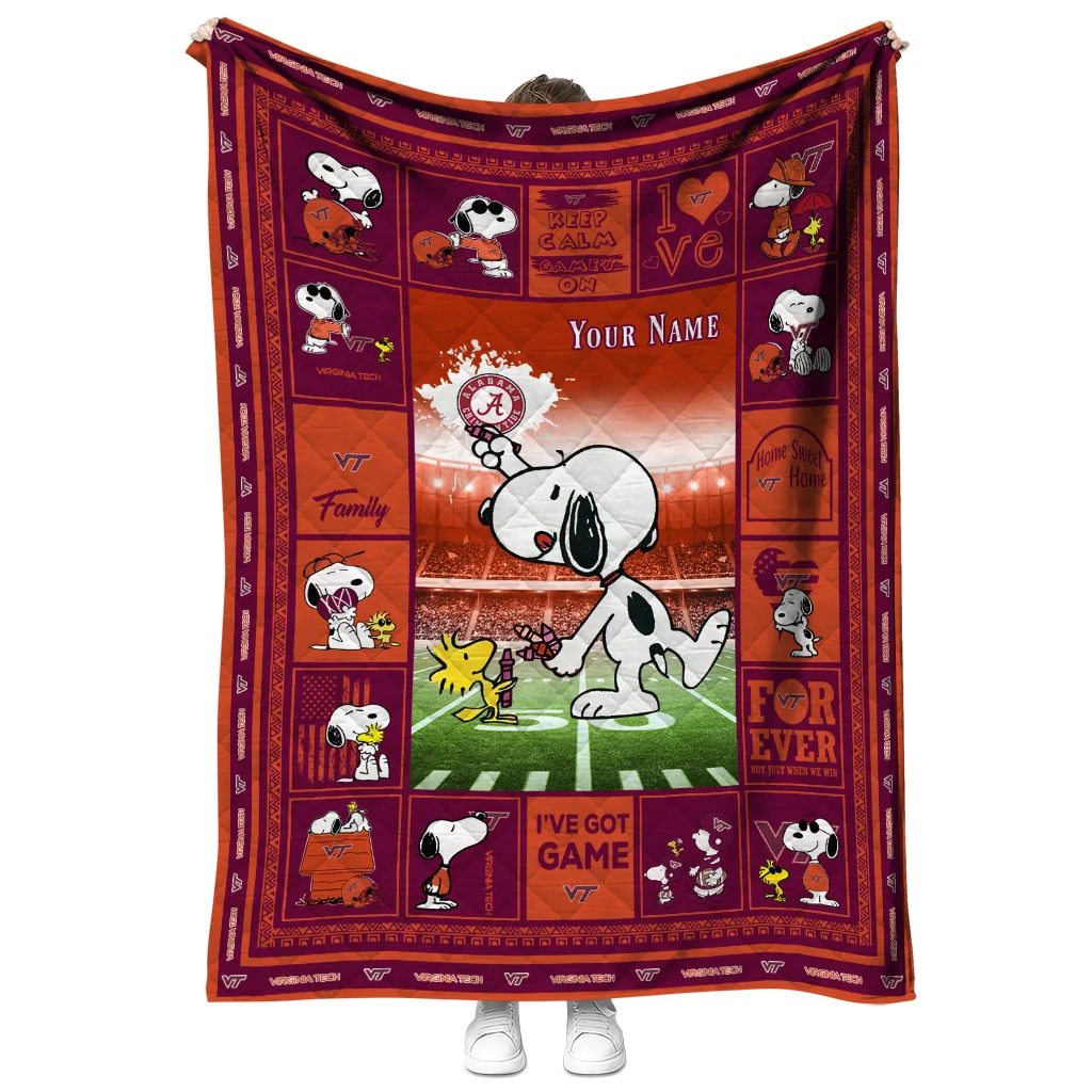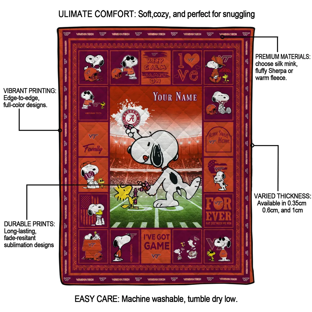 Custom Virginia Tech Hokies Snoopy Coach Maroon Quilt Blanket
