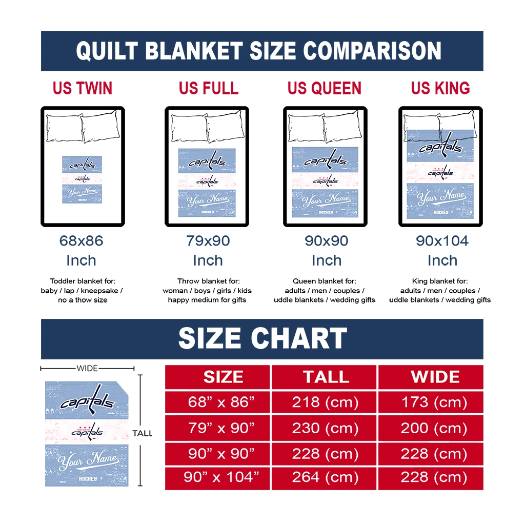 The Custom Washington Capitals Pinstripe Lines Blue White Quilt Blanket is more than a blanket—it’s everyday comfort, thoughtfully made. Crafted from premium quilting fabric with a soft microfiber touch, it offers a smooth hand-feel and lasting coziness. Layered quilting with a cotton-filled core provides adaptable warmth across seasons while maintaining a clean, tailored look on your bed or sofa.