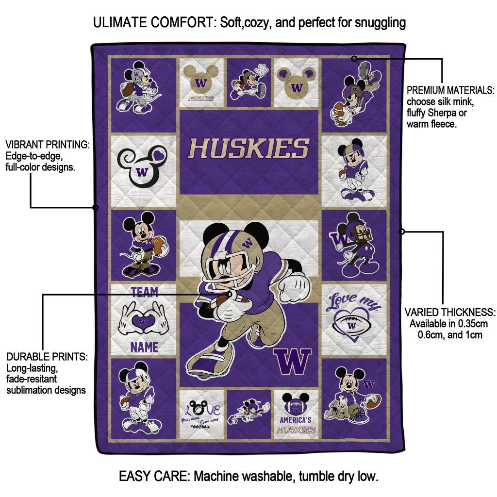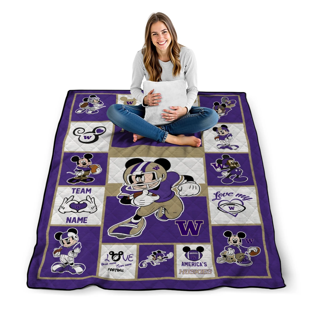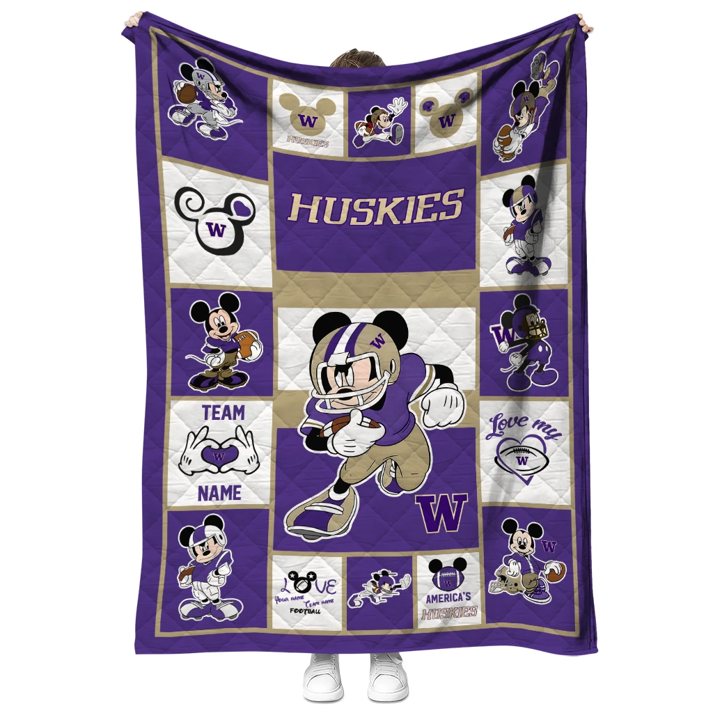 Custom Washington Huskies Mickey Crimson Purple White Quilt Blanket
