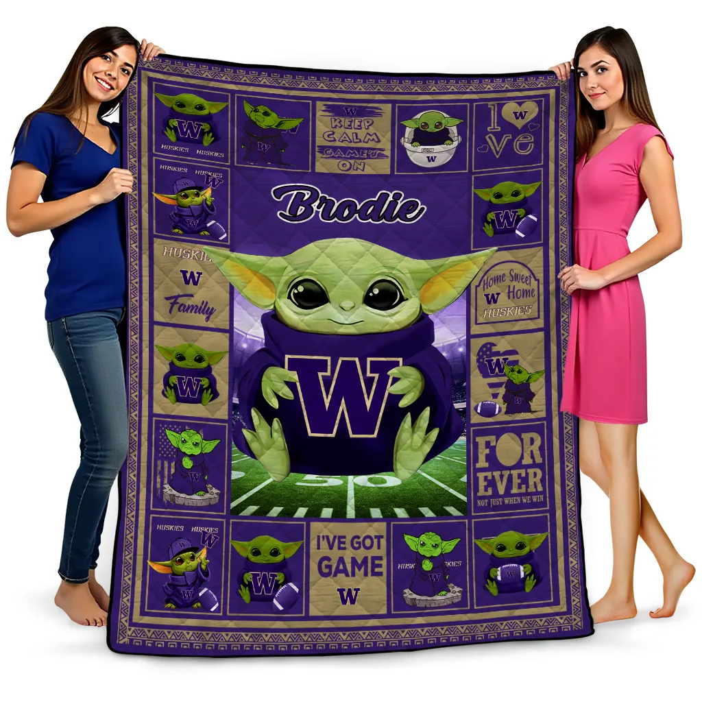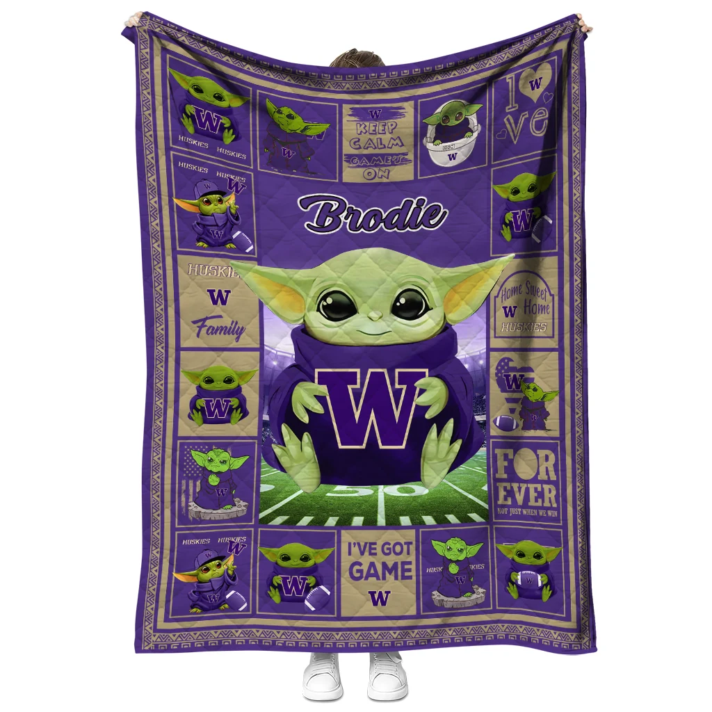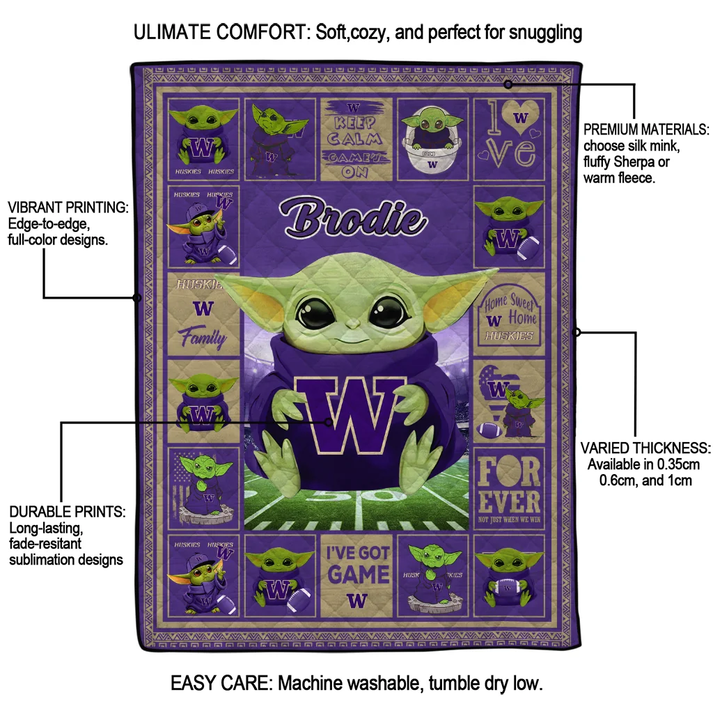 Custom Washington Huskies Yody Baby Pattern Purple Quilt Blanket