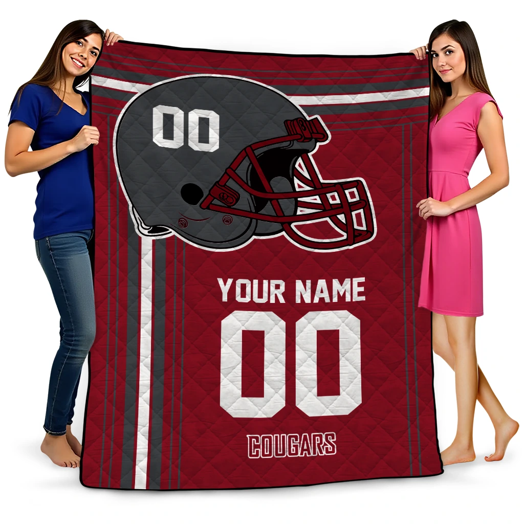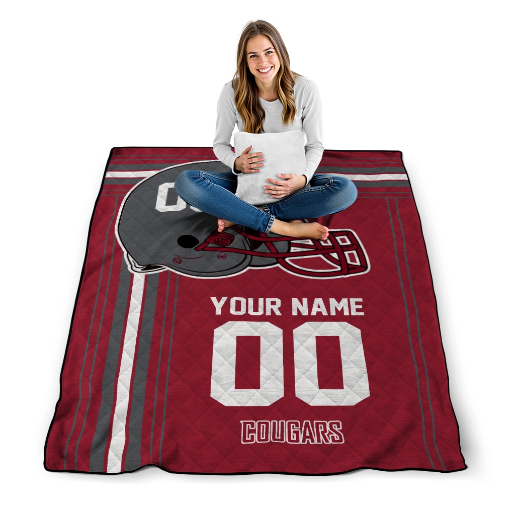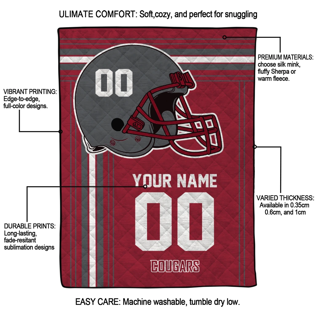 Wrap yourself in warmth and pride with the Custom Washington State Cougars Helmet Theme Crimson Quilt Blanket from the Washington State Cougars Blankets collection at Yes That Blanket. Made from 100% premium quilting-weight polyester blended with a touch of microfiber, this quilt offers a smooth, soft finish you’ll love. Choose between two quilting styles—Stipple or Diagonal—and enjoy the comfort of a cotton-filled layer inside that adds extra coziness for every season. The border is available in classic black or white, giving your design a clean, timeless edge.