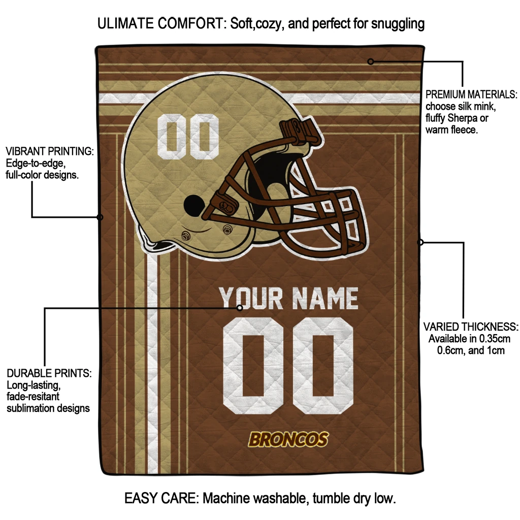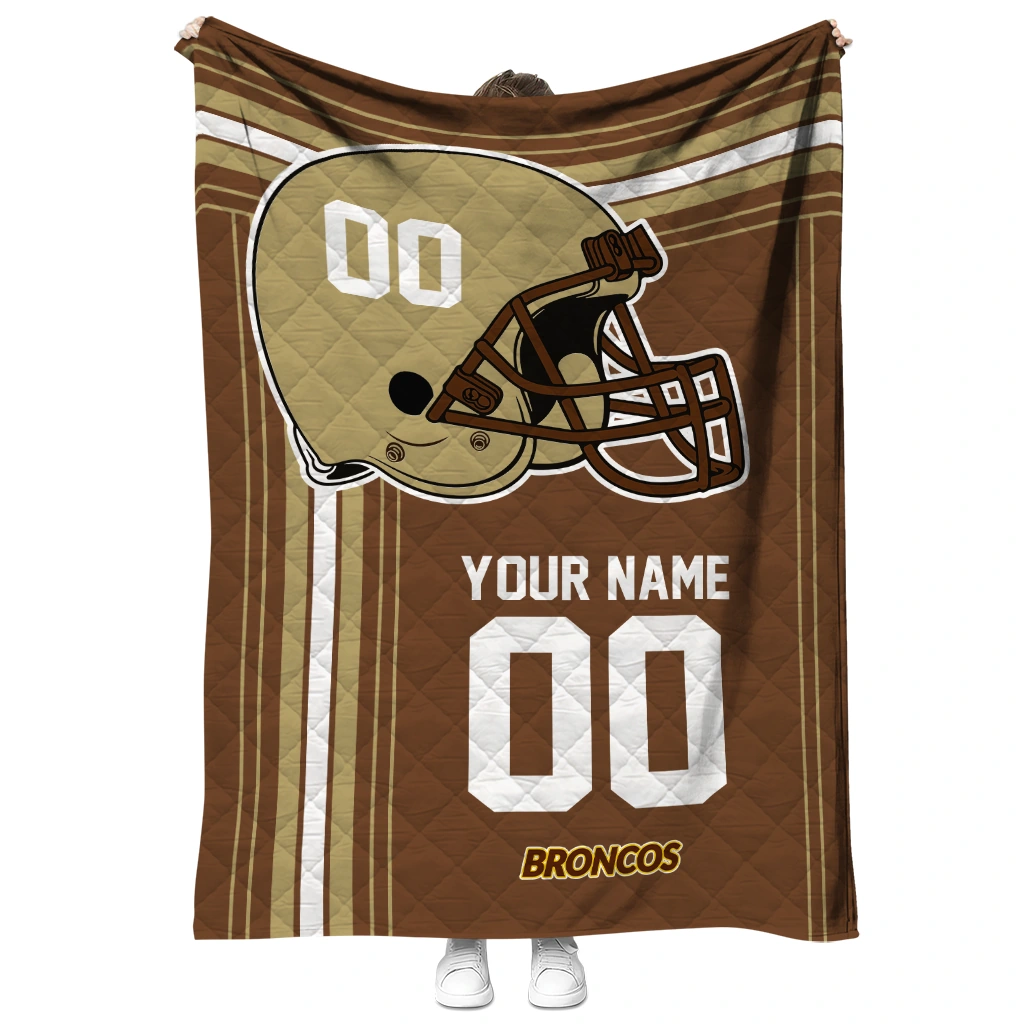Custom Western Michigan Broncos Helmet Theme Brown Quilt Blanket