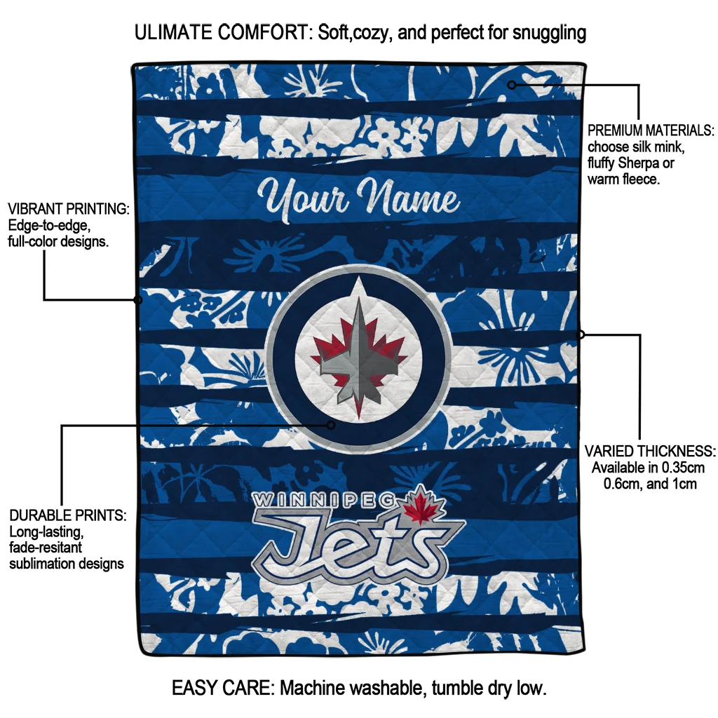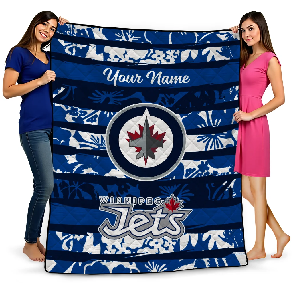 The Custom Winnipeg Jets Layered Florals Blue White Quilt Blanket is more than a blanket—it’s everyday comfort, thoughtfully made. Crafted from premium quilting fabric with a soft microfiber touch, it offers a smooth hand-feel and lasting coziness. Layered quilting with a cotton-filled core provides adaptable warmth across seasons while maintaining a clean, tailored look on your bed or sofa.