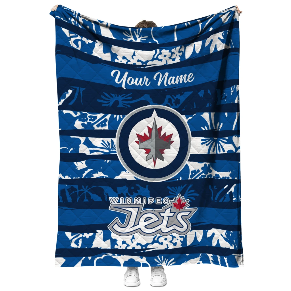 Wrap yourself in warmth and pride with the Custom Winnipeg Jets Layered Florals Blue White Quilt Blanket from the Winnipeg Jets Blankets collection at Yes That Blanket. Made from 100% premium quilting-weight polyester blended with a touch of microfiber, this quilt offers a smooth, soft finish you’ll love. Choose between two quilting styles—Stipple or Diagonal—and enjoy the comfort of a cotton-filled layer inside that adds extra coziness for every season. The border is available in classic black or white, giving your design a clean, timeless edge.