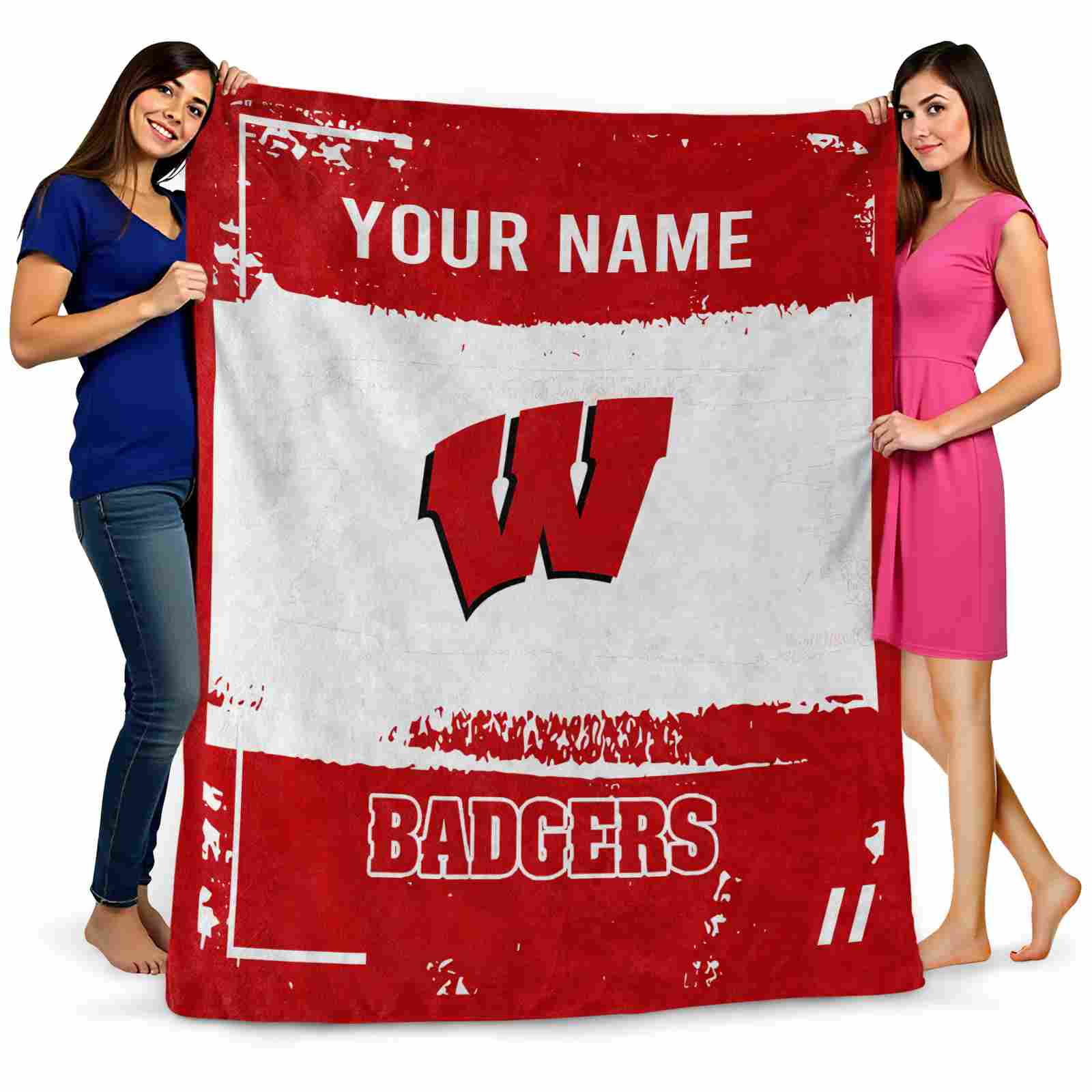 Custom Wisconsin Badgers Paint Strokes Red White Blanket